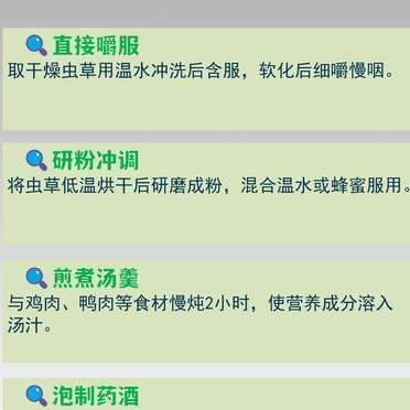 冬虫夏草,一种真菌长在虫子尸体上的东西,被放进嘴里直接嚼。 温水冲一下,塞进嘴里
