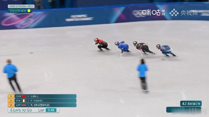 米兰冬奥会短道男子1000米1/4决赛,孙龙顺利晋级。