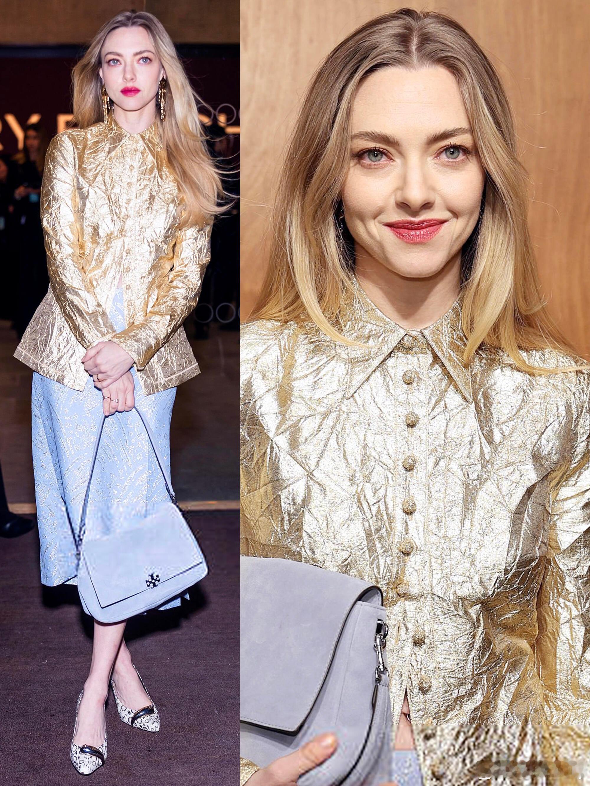 纽约时装周|Amanda Seyfried 美到发光Tory Burch 2026秋冬大秀,Amanda Seyfried惊艳亮相。身着2026春夏金色褶皱衬衫,金发与鎏金面料交相辉映,风拂发丝、闪光灯下,氛围感直接拉满。40岁的状态绝了,优雅松弛、贵气不张扬,把温柔与利落平衡得刚刚好,这组街拍真的封神。时装周 |纽约时装周 |时装周看秀阵容