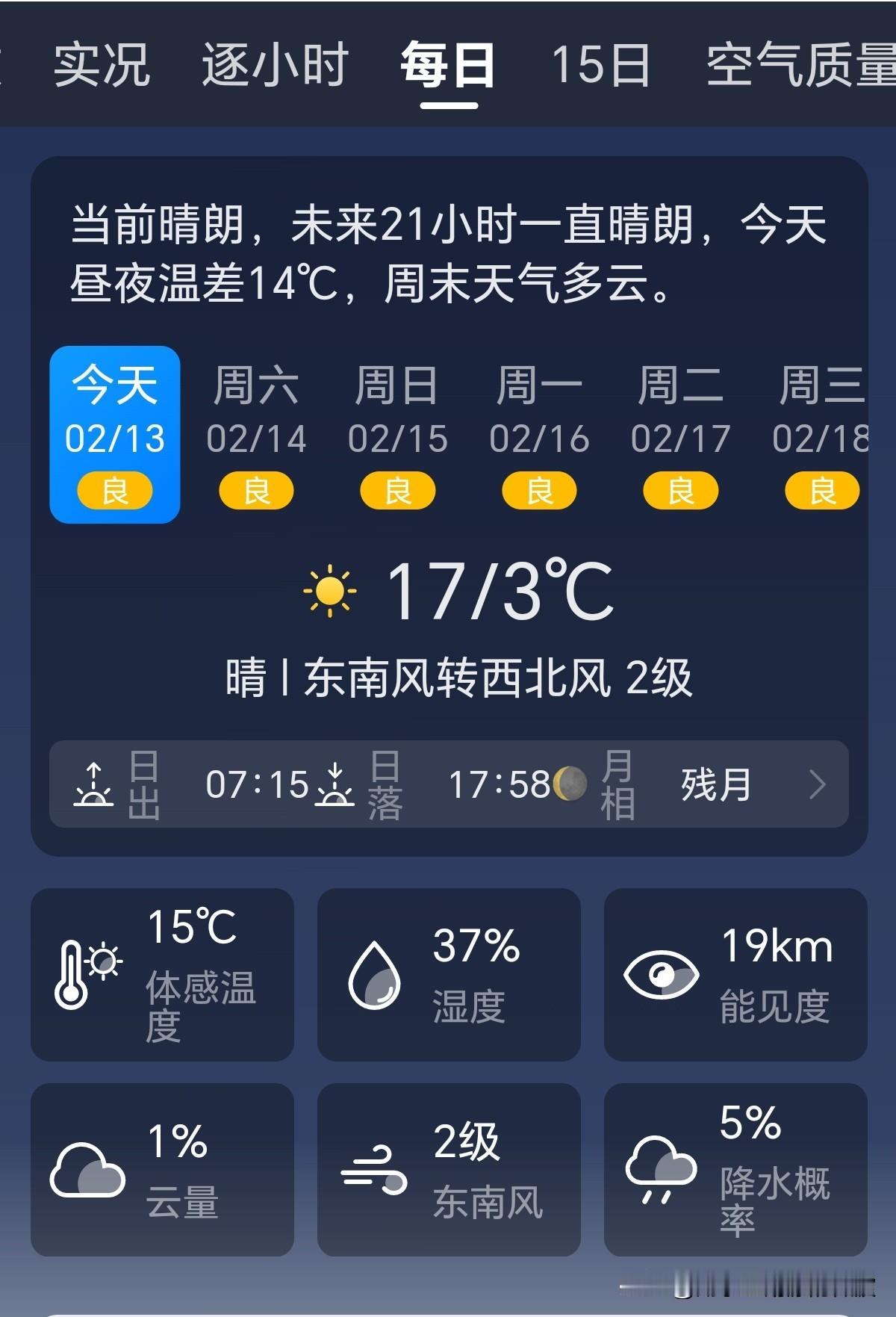 🌻早安问候🌻 𝙂𝙤𝙤𝙙 𝙈𝙤𝙧𝙣𝙞𝙣𝙜 今天是: 2026年2月13日 农历:乙巳年腊月二十六 签到成功,获得14个创业卷,已连续签到13天! 👉今日天气: 晴,当前晴朗,未来21小时一直晴朗,周末天气多云。 👉空气质量: 轻度污染 除少数对某些污染物特别容易过敏的人群外,其他人群可以正常进行室外活动。 👉气温:17℃~3℃ 昼夜温差14度,人体感觉寒冷,极不适应,注意保暖防寒,防止冻伤。 👉湿度:43% 👉风向:东南风转西北风 👉风力:2级 👉紫外线:1级,最弱紫外线辐射天气,无需特别防护。若长期在户外,建议涂擦SPF在8-12之间的防晒护肤品。 👉日出:7:15 👉日落:17:58 ꧁ 🍄꧂ 🌷🌴🍒 老了才知道: 知足是高人,心宽是圣人,有钱只是一般人,健康才是有福人,每天问个好,都是知心人! 祝您平安吉祥,是个每天都心态祥和开心快乐人!ʚ🌻ɞ早安☕️