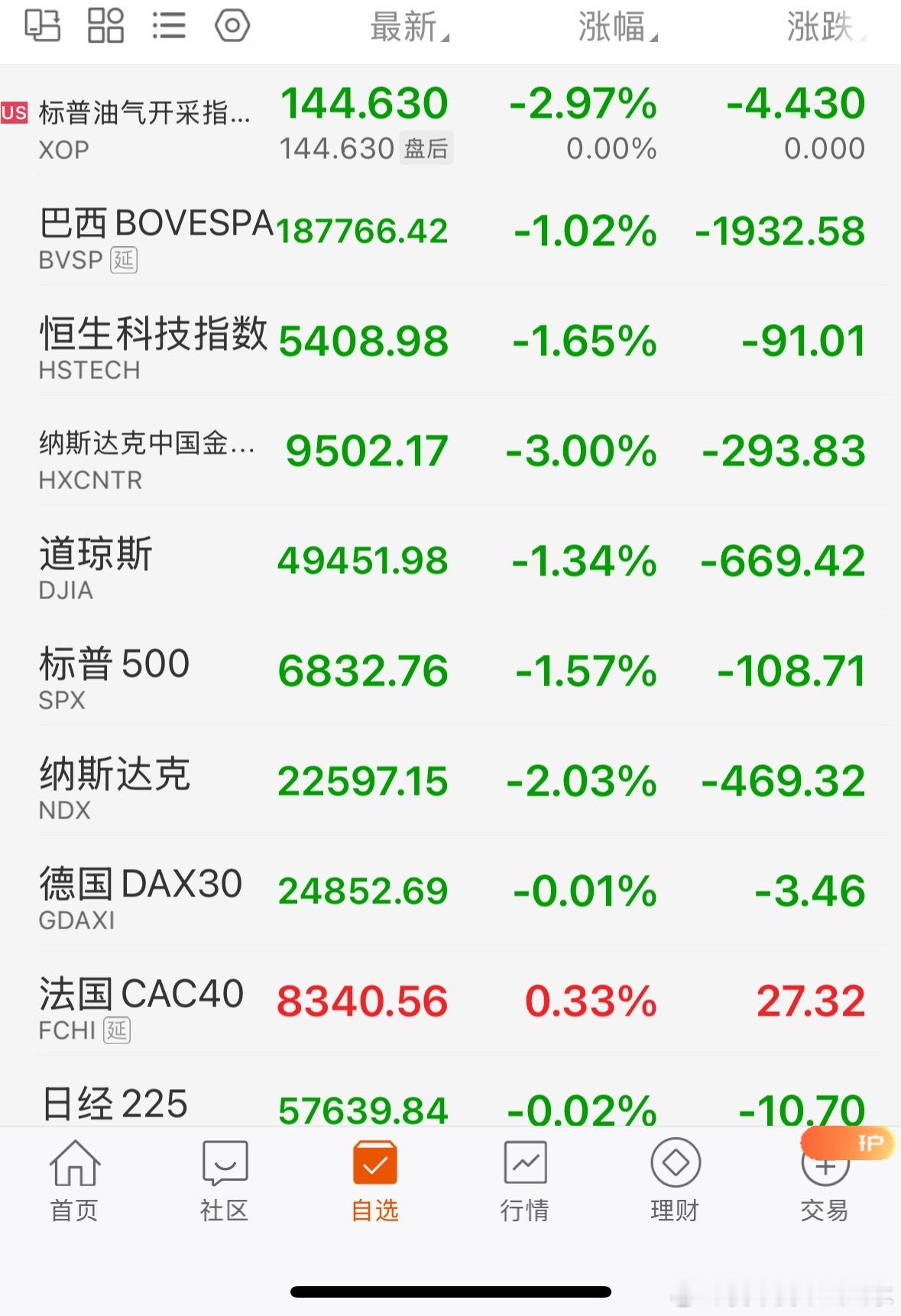 纳斯达克综合指数下跌469.32点,收于22597.15点,跌幅为2.03%。