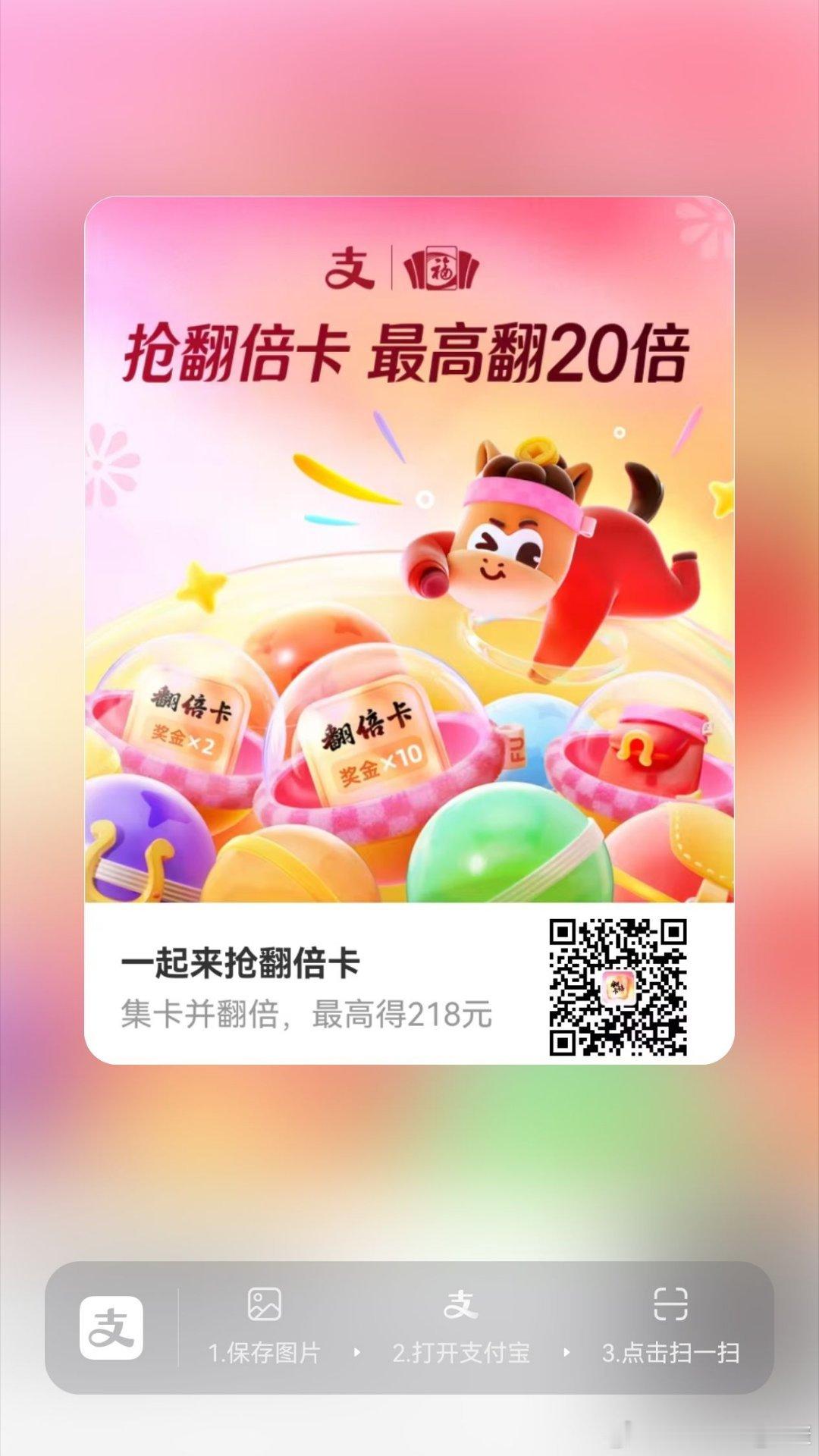 支付宝翻倍卡,已集齐6套,据说扫这样几率大一些。(互助的评论区滴滴)