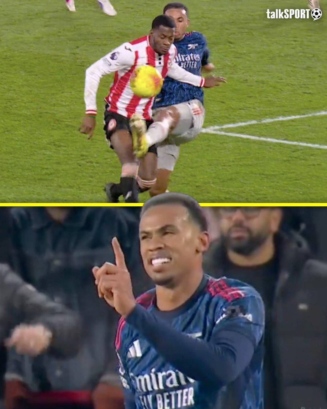 【加布里埃尔逃红】英超第26轮,阿森纳客场1-1战平布伦特福德,错失全取三分的机会。比赛尾声阶段,阿森纳后卫加布里埃尔的一次危险铲抢引发巨大争议,他本应吃到第二张黄牌被罚下场,却幸运地留在了场上。 比赛进行到第82分钟,场上争议爆发。加布里埃尔在一次防守中做出了一次失控的铲抢动作,完全没有碰到球,而是直接踢到了布伦特福德前锋瓦塔拉,导致对方痛苦倒地。 主裁判随即判罚了任意球,但并未向他出示第二张黄牌。这一判罚瞬间点燃了Gtech社区体育场内的主队球迷,全场爆发出巨大的嘘声,所有人都认为加布里埃尔理应两黄变一红被罚下场。 赛后,布伦特福德主帅安德鲁斯在接受TNT体育采访时直言不讳:“那绝对是一张黄牌,是的。我只是觉得,前几次犯规往往会为整场比赛的判罚尺度定下基调,而今天的判罚尺度始终没到位,上半场有好几次,我们感觉自己没得到公平的对待。”阿森纳