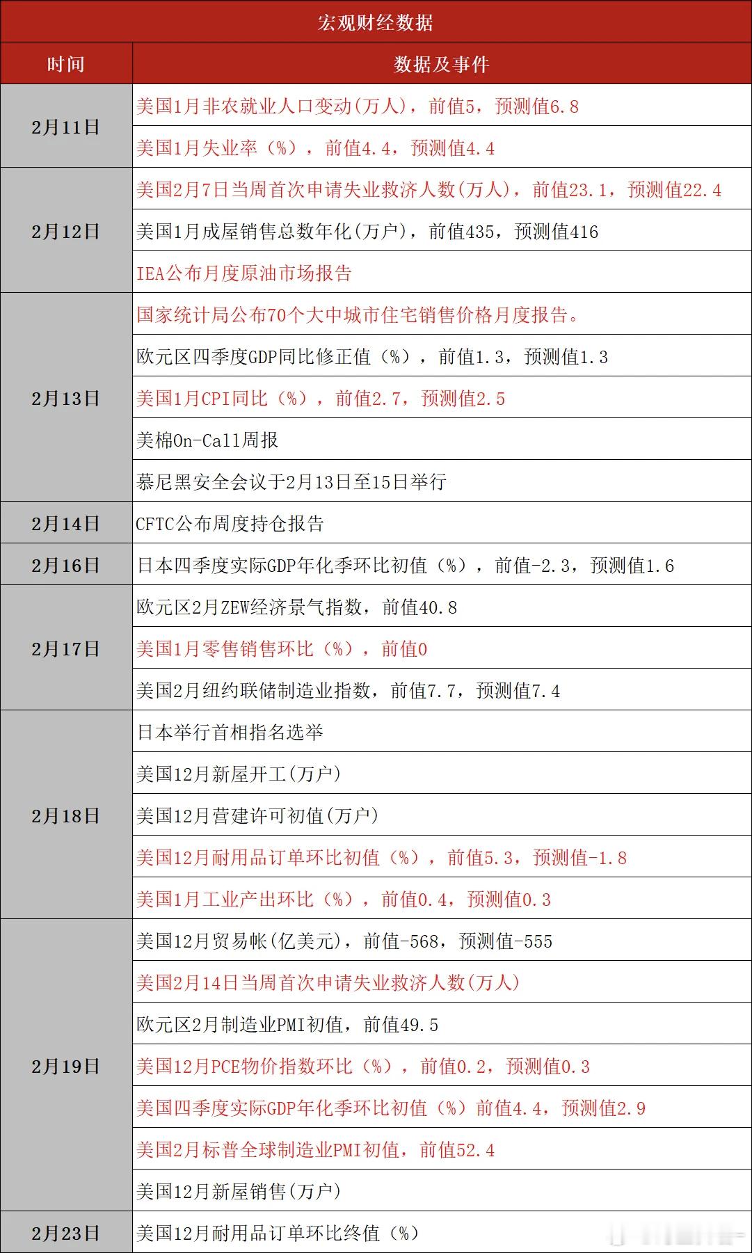 春节假期重要数据及事件提示期货