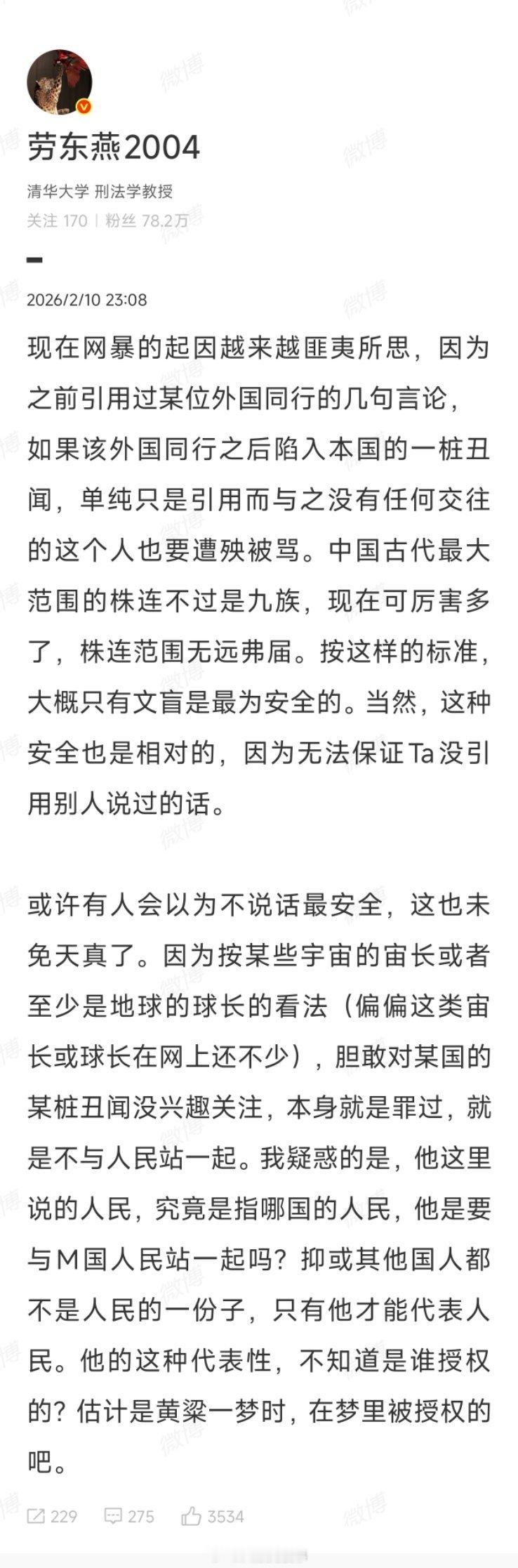我们的劳东燕老师指责网友批评罗翔是搞株连,并称这样搞,大概只有文盲才最安全。