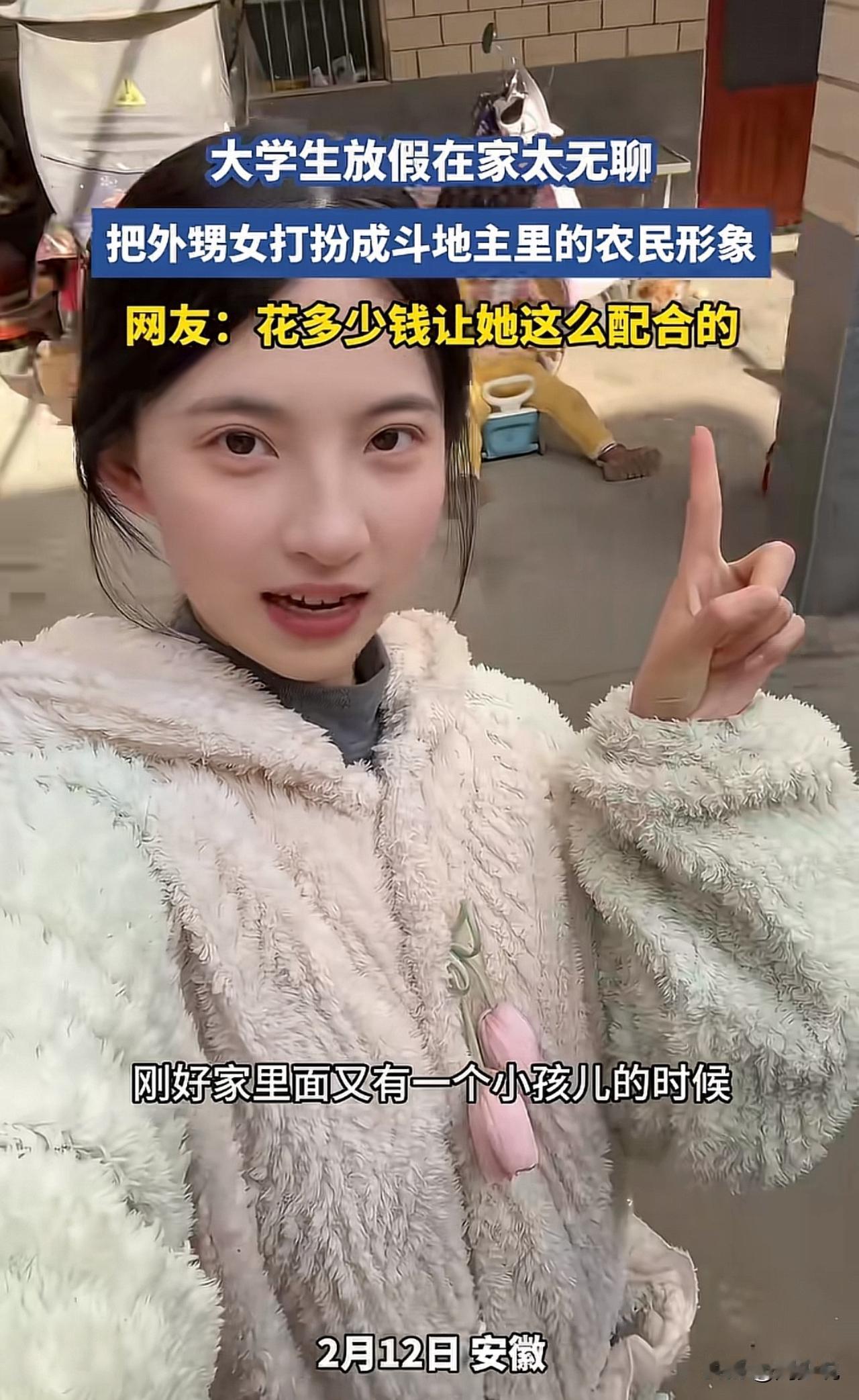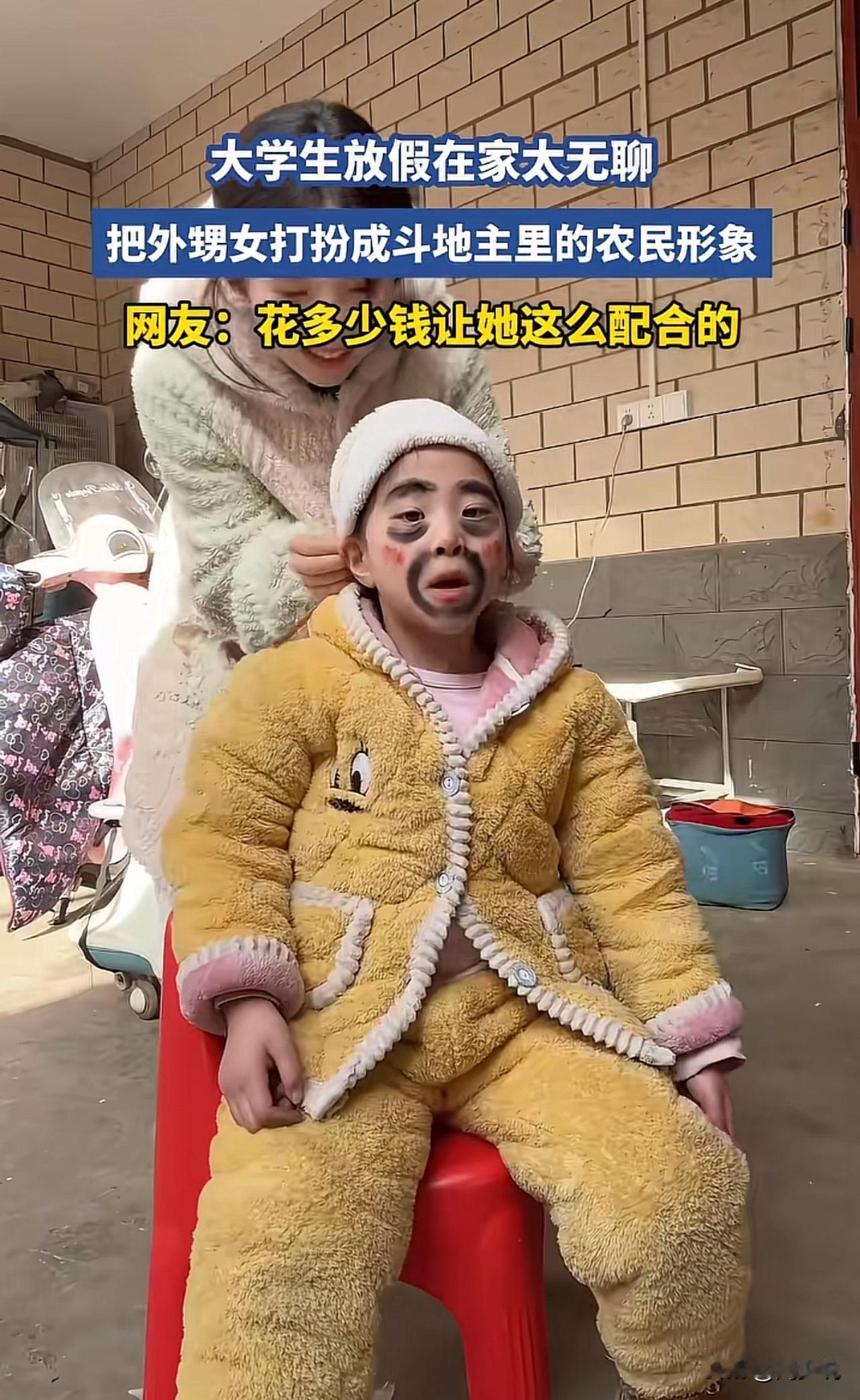 “这届大学生太会整活了!”最近,一位女大学生火了,只因实在闲得无聊,竟把小外甥女当成了“创作对象”,一番打扮后,直接撞脸斗地主里的农民形象,不管是造型还是神态,都跟游戏里的角色高度贴合,呆萌又搞笑,画面一出,瞬间逗乐全网。 这一幕也引来网友纷纷调侃:“到底花了多少零食,才让小朋友这么配合?” 也有家长表示:“放假后的大学生精力旺盛,能安安静静带娃,已经算是很不错的状态了。” 在周少看来,其实在假期里,年轻人用轻松有趣的方式打发时间,既能缓解平日里的学习压力,也能在陪伴晚辈的过程中收获简单的快乐。 客观的说,这样无伤大雅的小创意,不仅给生活增添了趣味,也能让亲子与亲情间的互动变得更加鲜活。 不必要求年轻人时刻保持严肃,适当的放松与玩乐,反而能让他们在轻松的氛围里学会用心感受生活,也能在陪伴中慢慢懂得责任与耐心。 说直白点,这看似无厘头的小趣事,藏着的是年轻人最真实的生活状态,简单快乐,也格外治愈。#寻美三湘#