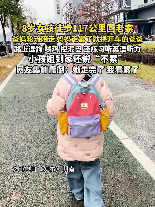 湖南一名8岁孩子徒步返乡过年的经历火爆网络,小小身躯蕴藏惊人力量。 (个人观点仅供参考,无任何不良引导) 众人春运奔波赶路。孩子选择用双脚奔赴家乡。这般勇气与毅力远超常人。古往今来便有有志不在年高的至理名言。孩童身上的执着与坚定。恰恰是许多成年人缺失的品质。 孩子从长沙梅溪湖出发。目的地是涟源老家。全程路程超过一百二十公里。整整五天的徒步行程。恶劣天气接连不断。冰冷雨水夹杂雪花飘落周身。路面湿滑难行。父母看在眼里疼在心上。数次开口劝说孩子终止行程。孩子干脆利落回应想得美。丝毫没有退缩之意。父母始终陪伴左右。一人贴身随行鼓励。一人驾车保障衣食住行。全程安稳照料无半点疏漏。孩子始终保持乐观状态。沿途观察自然生灵。聆听学习知识。稚嫩脚步踏过一程又一程泥泞。始终朝着家的方向稳步前行。不曾有半分懈怠与抱怨。 这般年纪的孩童本可享受安逸呵护。孩子却选择直面艰辛挑战自我。世间多少人面对困难半途而废。缺少持之以恒的坚定信念。孩子用实际行动打破众人对孩童的固有认知。用脚步书写坚持的意义。五天风雨兼程。一百二十公里漫漫路途。成为成长路上最珍贵的历练印记。 硬核成长不靠温室庇护。亲身历练方能铸就强大内心。孩子的坚持点亮成长之路。也为无数家庭带来教育启发。坚守初心直面挑战。人生之路方能行稳致远。
