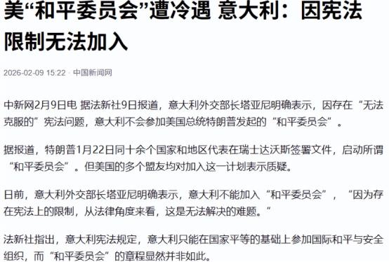 特朗普“新联合国”首次开会,一国明确参加,中方6个字定调   最近特朗普牵头搞的 “加沙和平委员会” 有点尴尬,原定 2 月 19 日在美国开首次峰会,当初在达沃斯有 19 个国家签了章程,大家都以为这些国家肯定会去参会,结果到现在,明确说要去的就只有匈牙利一个国家,其他国家都态度冷淡,扩员也推进不下去。   这个所谓的 “和平委员会”,被不少人叫做 “特朗普版联合国”,去年 1 月在达沃斯世界经济论坛上正式启动,当时美国拉了 18 个国家一起签了章程,连国际社会不承认的科索沃都在里面,可偏偏没有巴勒斯坦和以色列的代表。   这俩可是加沙问题的核心相关方,少了他们,这个 “和平委员会” 从一开始就显得名不副实。特朗普还说,这个委员会先处理加沙问题,以后还要管其他地区的冲突,甚至暗示可能要取代联合国的部分作用。   可为啥当初签了字的国家,现在都不愿去开会了呢?关键还是这个委员会的规则和运作方式让人不放心。   根据披露的章程,特朗普自己当 “终身主席”,任期不受限制,而且这个职位只跟他个人挂钩,不是跟美国总统职位走,只有他自愿卸任或者执行委员会全票同意罢免,才能换主席,还得由他指定继任者。   更让人看不懂的是,成员国本来任期三年,可要是第一年就拿出 10 亿美元,就能获得永久成员资格,这简直就是把国际组织当成了 “花钱买特权” 的俱乐部。   更重要的是,这个委员会的最终决策权全在特朗普手里,他有否决所有决定的权力,执行委员会里也大多是他的亲信,比如他的女婿库什纳、国务卿鲁比奥这些人。这样的设置,让很多国家觉得不是来商量和平的,而是来听美国指挥的,自然不愿意参加。   欧洲国家几乎集体拒绝了邀请。法国总统直接说不加入,理由是这个委员会超出了加沙问题的范围,会破坏联合国的体系,就算特朗普威胁要对法国葡萄酒征收 200% 的关税,法国也没松口。   德国也说对这个委员会有很多疑问没解答,坚信要维护联合国为核心的国际秩序,现在这种形式肯定不能加入。英国、挪威、瑞典这些国家也都明确拒绝或者表示要再评估,没有一个西欧国家愿意捧场。   就算是当初签了章程的国家,态度也变了。以色列总理内塔尼亚胡明确反对,说这个委员会的组成没跟以色列协调,不符合他们的政策,因为以色列想在加沙地区保有绝对的安全控制权,怕多边机构限制他们的行动。   沙特、土耳其、卡塔尔这些中东国家,虽然签了字,但现在也没明确说要去参会,毕竟加沙问题关系到整个中东的利益,他们也不想被美国牵着走。   在这种情况下,只有匈牙利明确表示会参加。匈牙利总理欧尔班一直跟特朗普关系比较近,在很多问题上都跟美国保持一致,这次愿意捧场,也是想通过这种方式巩固和美国的关系,在欧盟内部凸显自己的独特立场。   面对这个 “新联合国”,中方的态度很明确。之前有外媒追问中国是否会出席,外交部发言人直接回应 “没有新的补充” 这 6 个字。   这可不是随便说说,而是对之前立场的重申,之前中方就已经表态,要坚定维护以联合国为核心的国际体系,遵循联合国宪章的宗旨和原则。   这 6 个字其实就是告诉国际社会,中方不认可这种绕开联合国、搞单边主导的国际组织,还是会坚持多边主义,通过联合国框架解决国际冲突。   现在看来,这个 “和平委员会” 从一开始就埋下了隐患。没有核心相关方巴以的参与,规则设计又偏向美国和少数国家的利益,还想挑战联合国的权威,自然得不到国际社会的广泛认可。   特朗普想打造一个 “美国主导的国际秩序”,但现在多数国家都清楚,和平问题不是靠一个国家说了算,也不是靠花钱买特权就能解决的,必须通过大家公认的联合国体系,让所有相关方都参与进来,才能真正解决问题。   眼看 2 月 19 日的会议越来越近,除了匈牙利,其他国家要么明确拒绝,要么观望不前,这个所谓的 “新联合国” 刚起步就陷入了窘境。   中方的 6 字定调,不仅表明了自己的立场,也说出了很多国家的心声:国际事务需要多边协商,而不是单边主导;维护联合国的权威,才是解决国际冲突的正道。