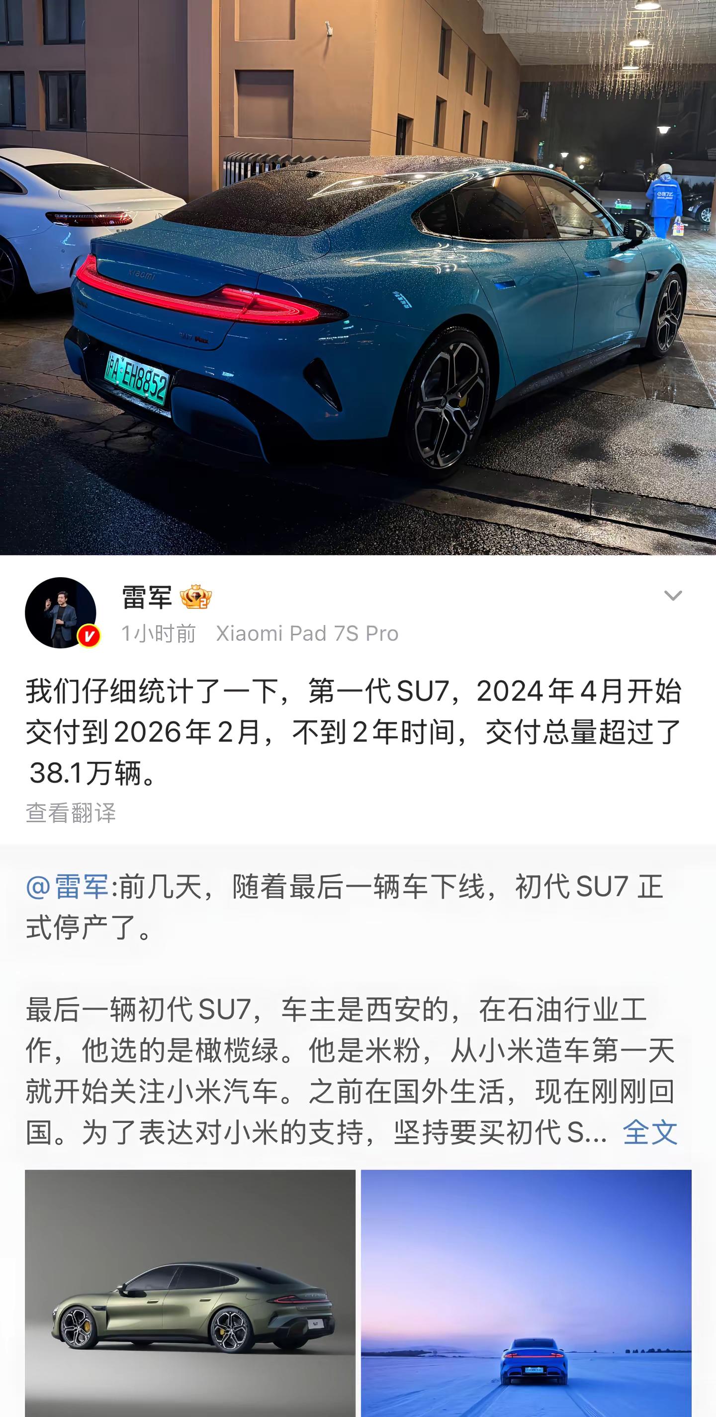 小米SU7卖了38.1万辆…还好当时买SU7盲订了,没怎么等…但这个