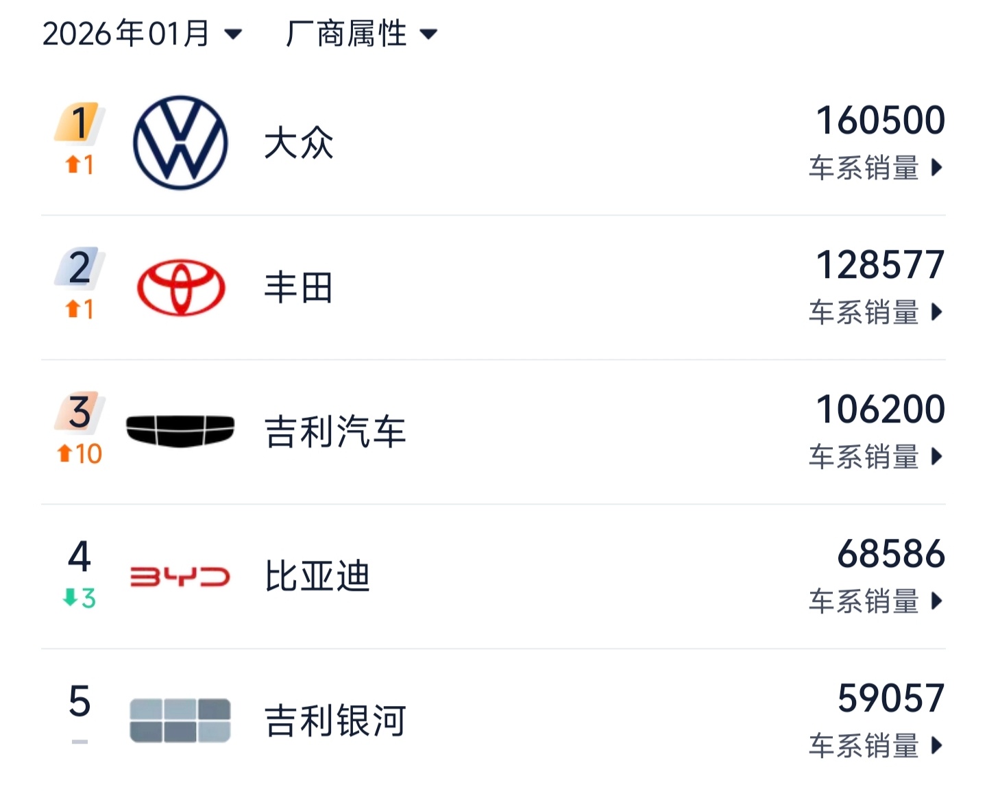比亚迪1月销量掉的有点狠,只有不到大众的一半了