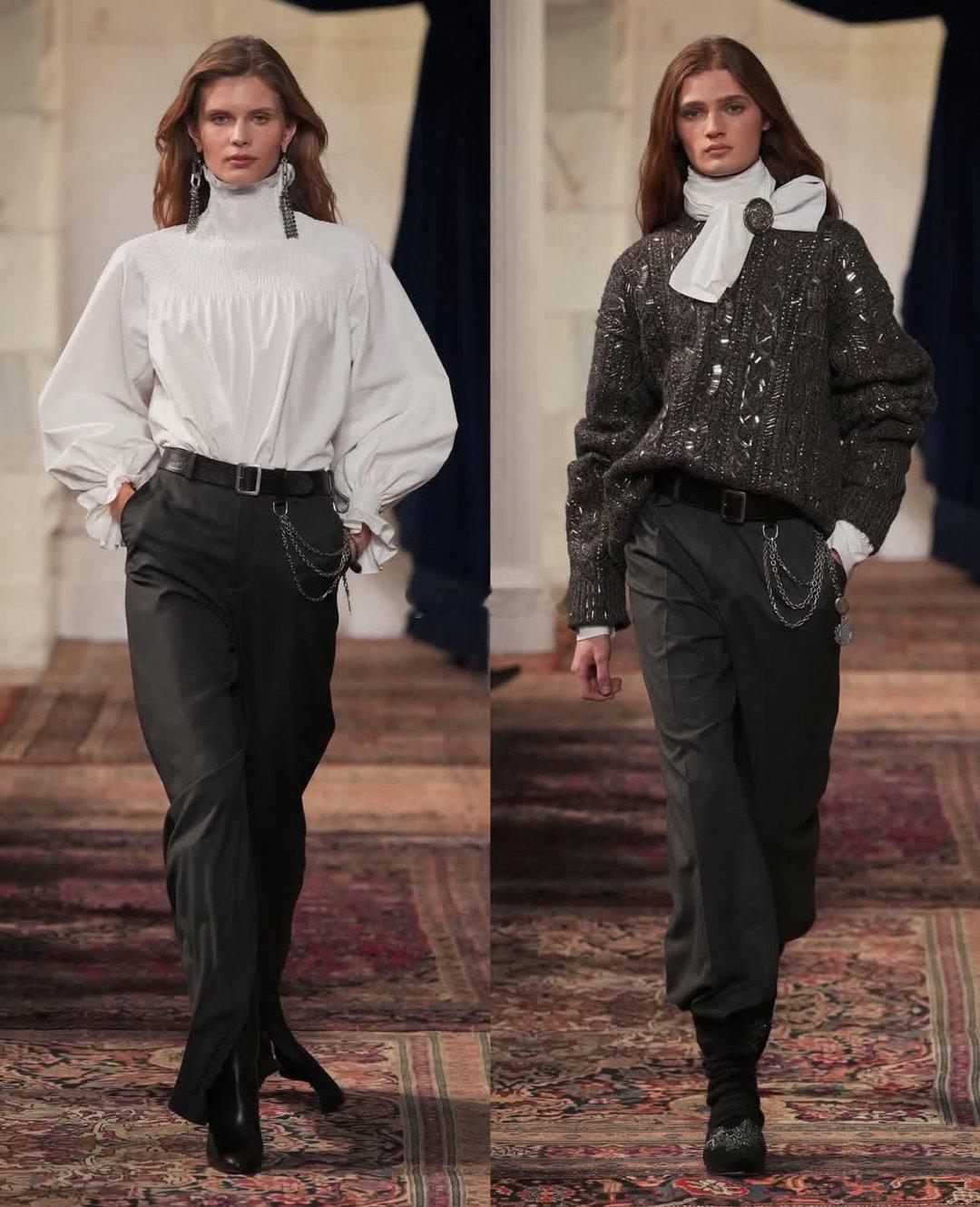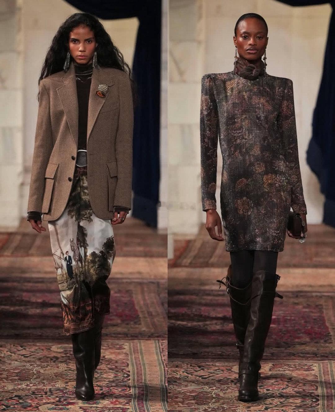 纽约时装周|Ralph Lauren打造了一场沉浸式美式庄园大秀,杰克斯·沙恩曼画廊变身贝德福德庄园,手绘森林壁画×复古地毯×丝绒沙发,粗花呢、锁子甲、爱德华塔夫绸…50+种面料混搭,游走于粗犷与浪漫之间!