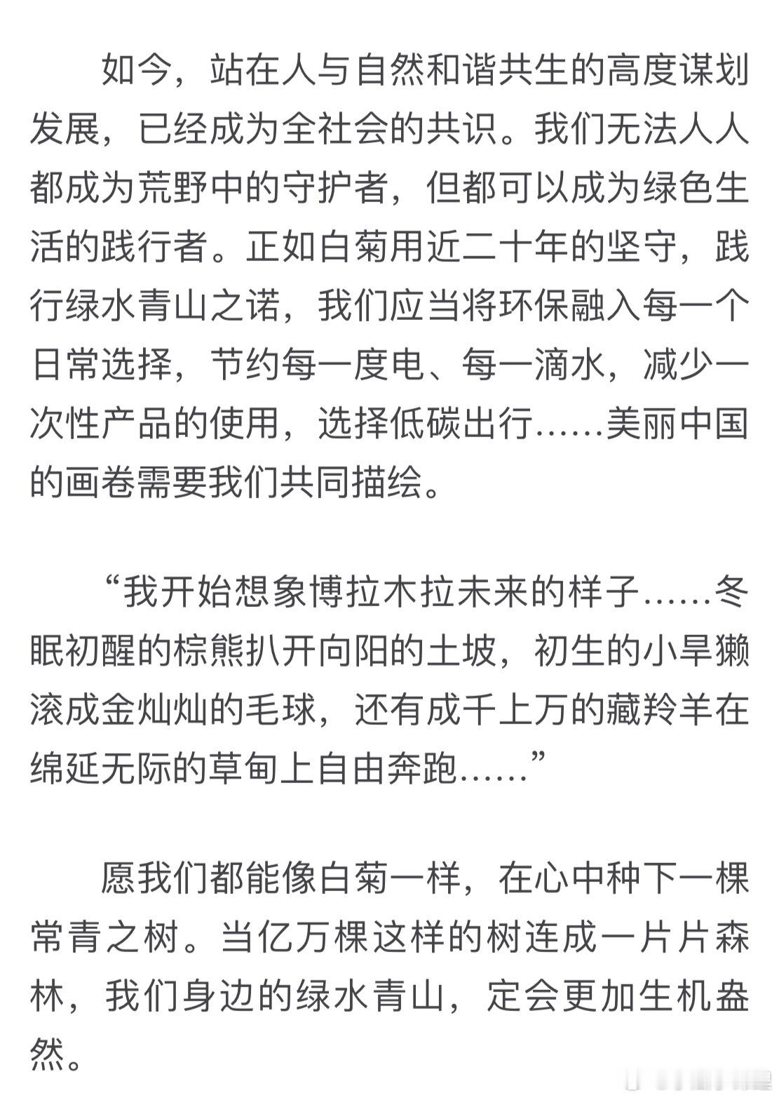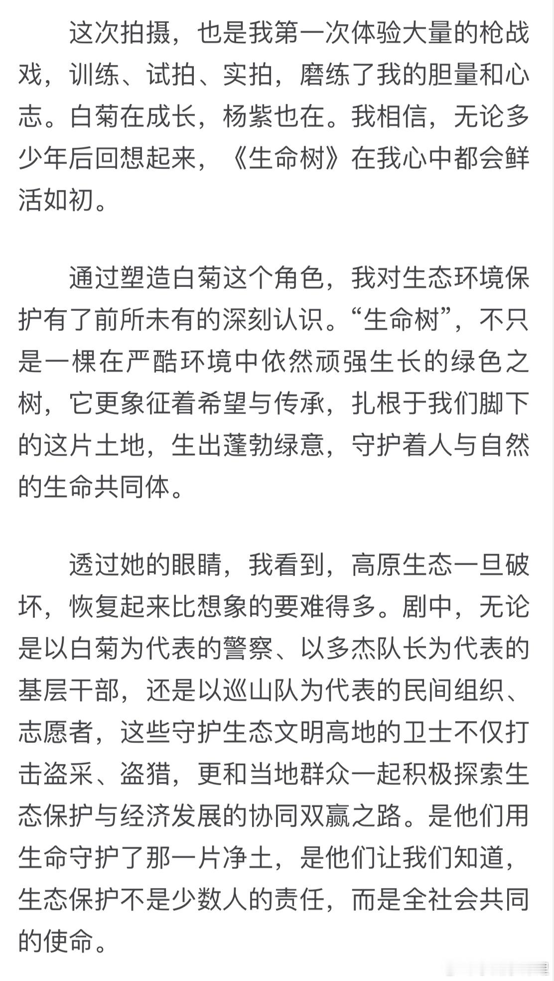 杨紫人民日报海外版撰文看出来白菊这个角色的塑造用心程度为守护生态文明出一份自己的力量