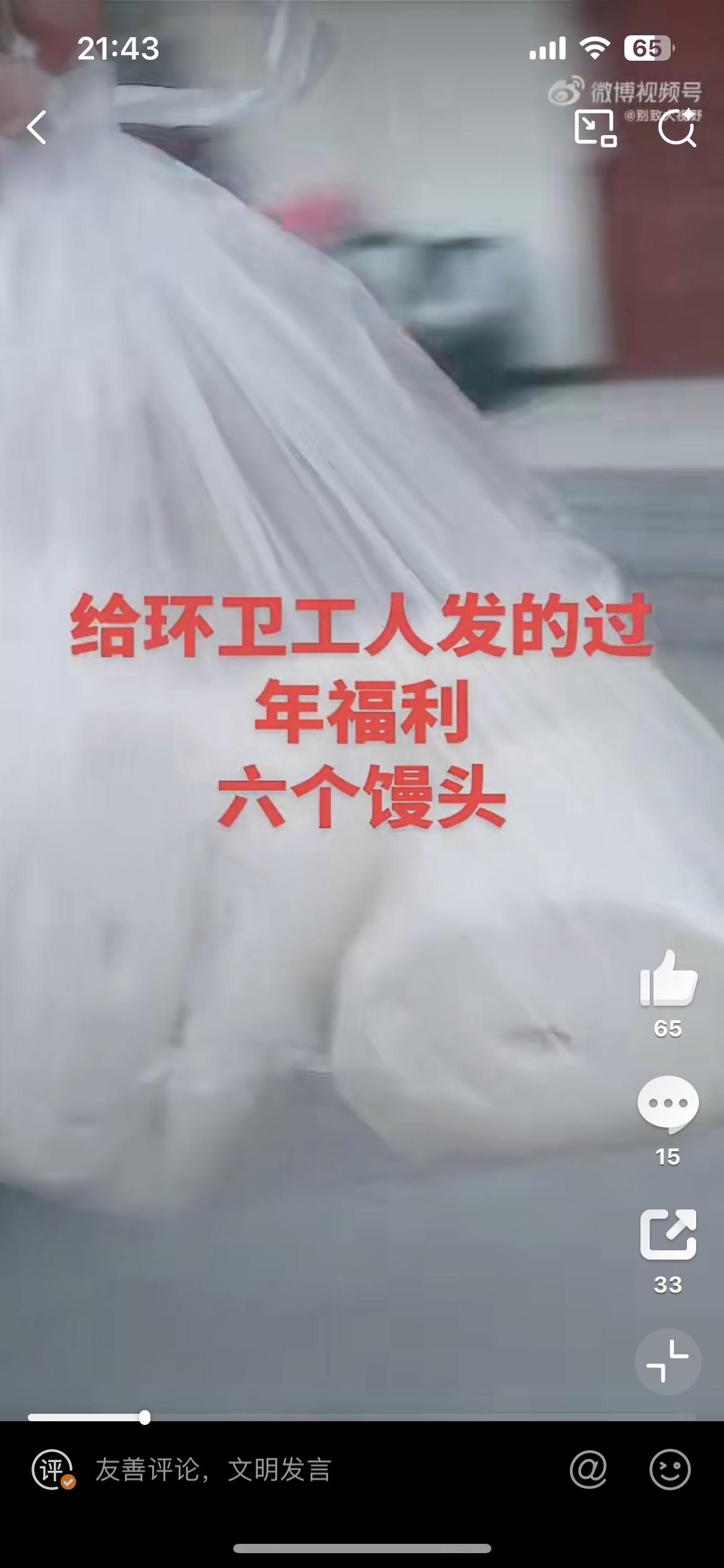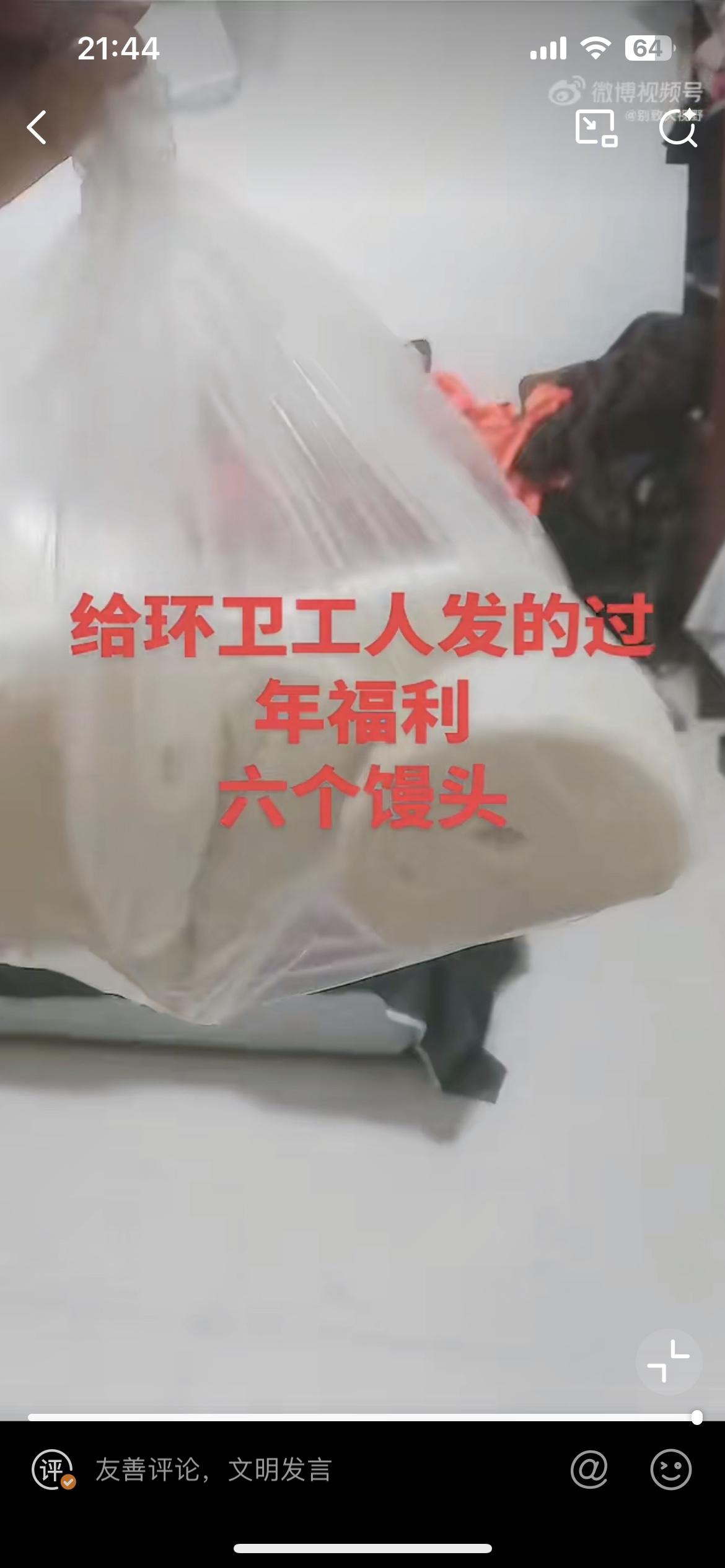 扎心了!河南,女子看到当环卫工的公公晚上回家时拎着一袋馒头,好奇他买这么多馒头干嘛,家里有饭有菜,结果公公却说,这不是买的,而是公司发的年终福利,女子当场就怒了:这还不如不发呢! 看了看那袋馒头,六个,圆溜溜的,塑料袋系个结。她没再多说什么,但心里那股劲儿翻来滚去,实在憋不住,还是发了条动态:环卫工辛苦一年,年底就发六个馒头,有钱请吃顿饭,发个一百两百也行,哪怕啥也不发,说几句热乎话也成。整六个馍,还不如不发 这句话说得直接,也说得实在。六个馒头,值不了几块钱,搁谁家也不差这一口。问题是,这不是馒头的事 环卫工是什么活儿?天不亮出门,路灯亮了才回来,风里雨里扫大街,夏天晒脱皮,冬天手皴口子。一年到头盼个年,盼的不是山珍海味,是那一句:这一年辛苦了,这是你的 结果辛苦一年,换六个馍,这怎么看都觉得说不过去 不是说馒头不能发。也不是非得大鱼大肉。关键是,发的东西得让干活的人觉得自己被看见了。一个包子铺过年给员工发两笼包子,那叫实惠;一家公司年底给员工发一箱水果,那叫关怀。环卫工不缺六个馒头,缺的是被当回事儿的感觉