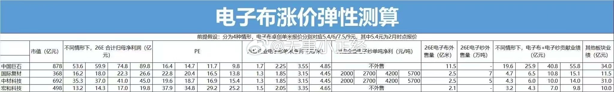 电子布涨价弹性测算