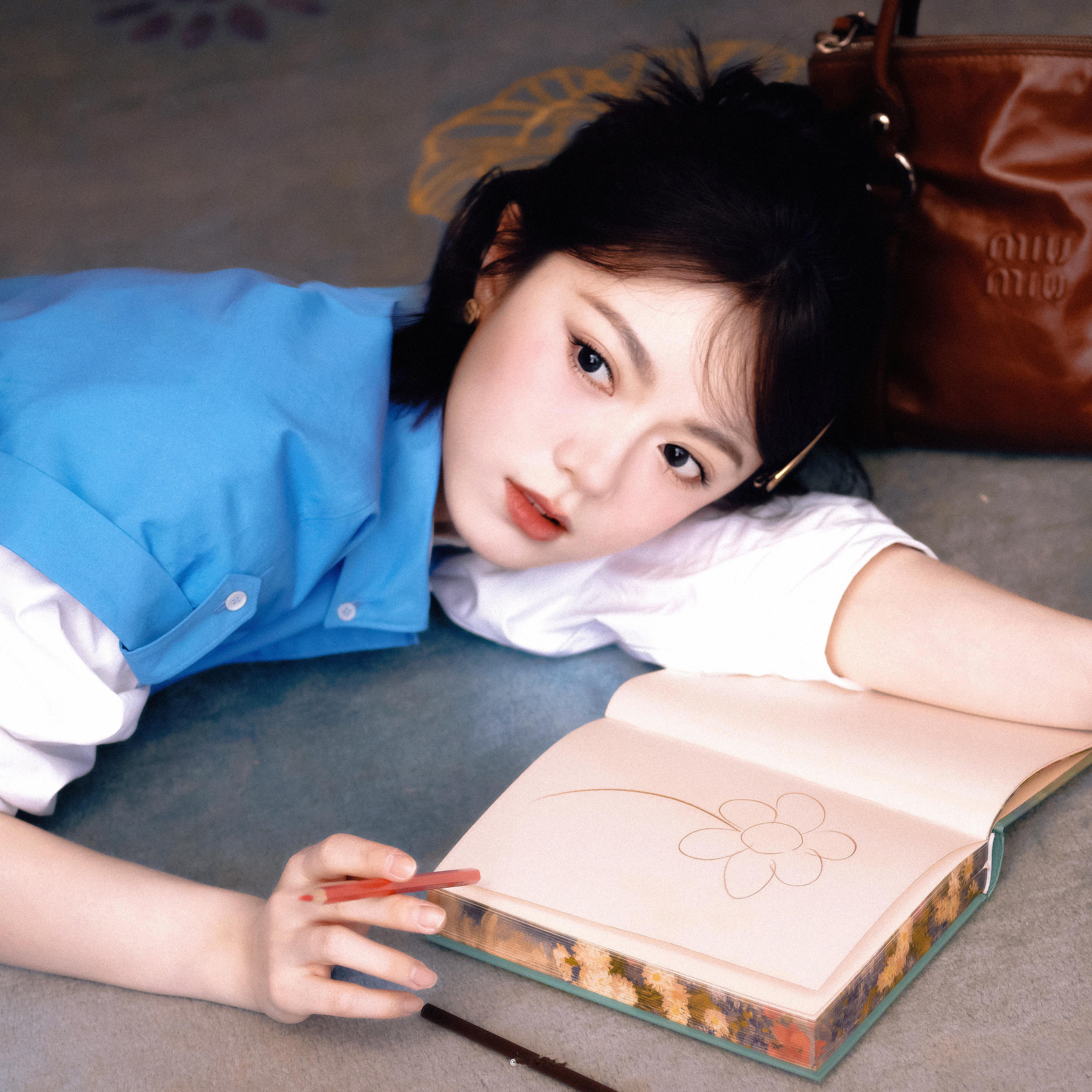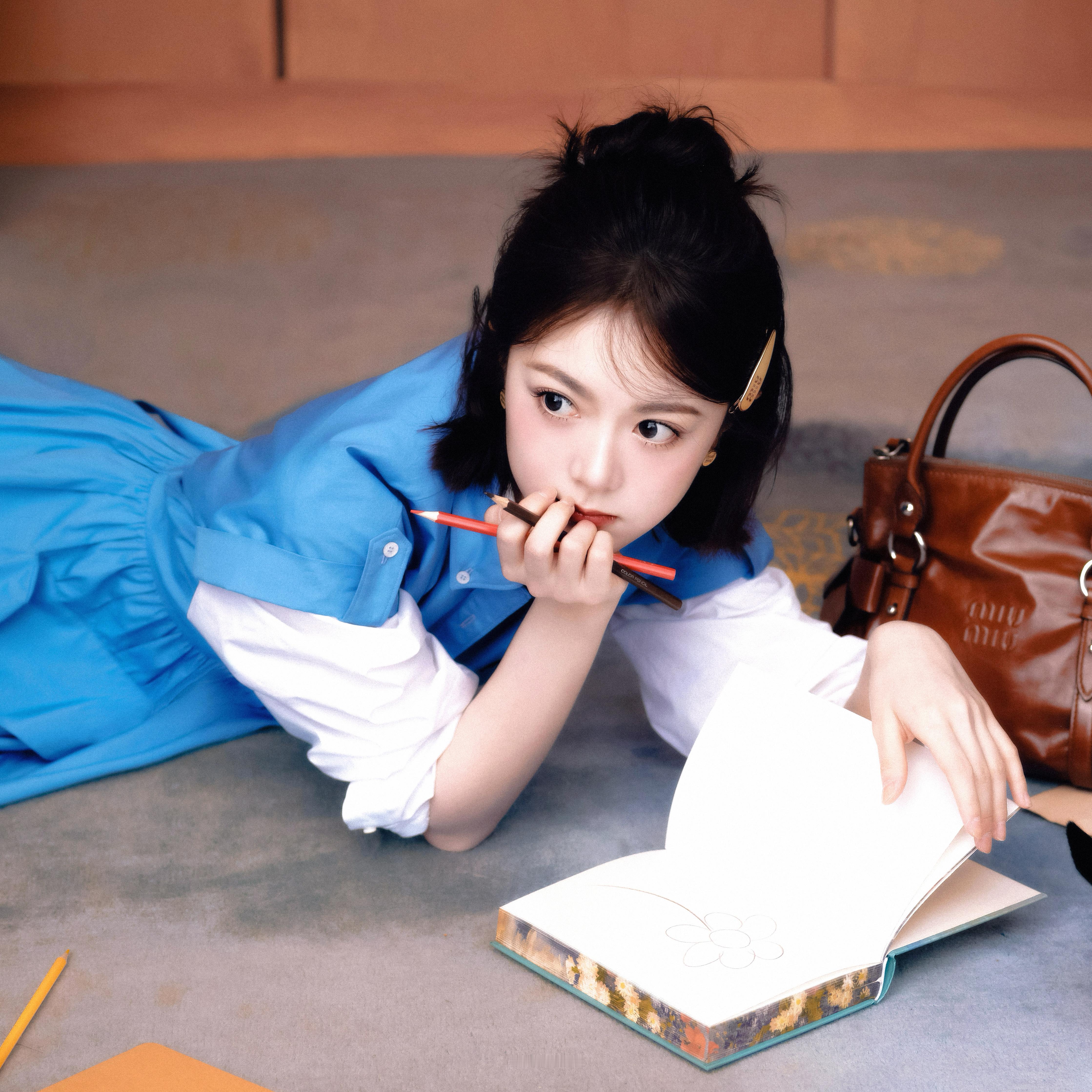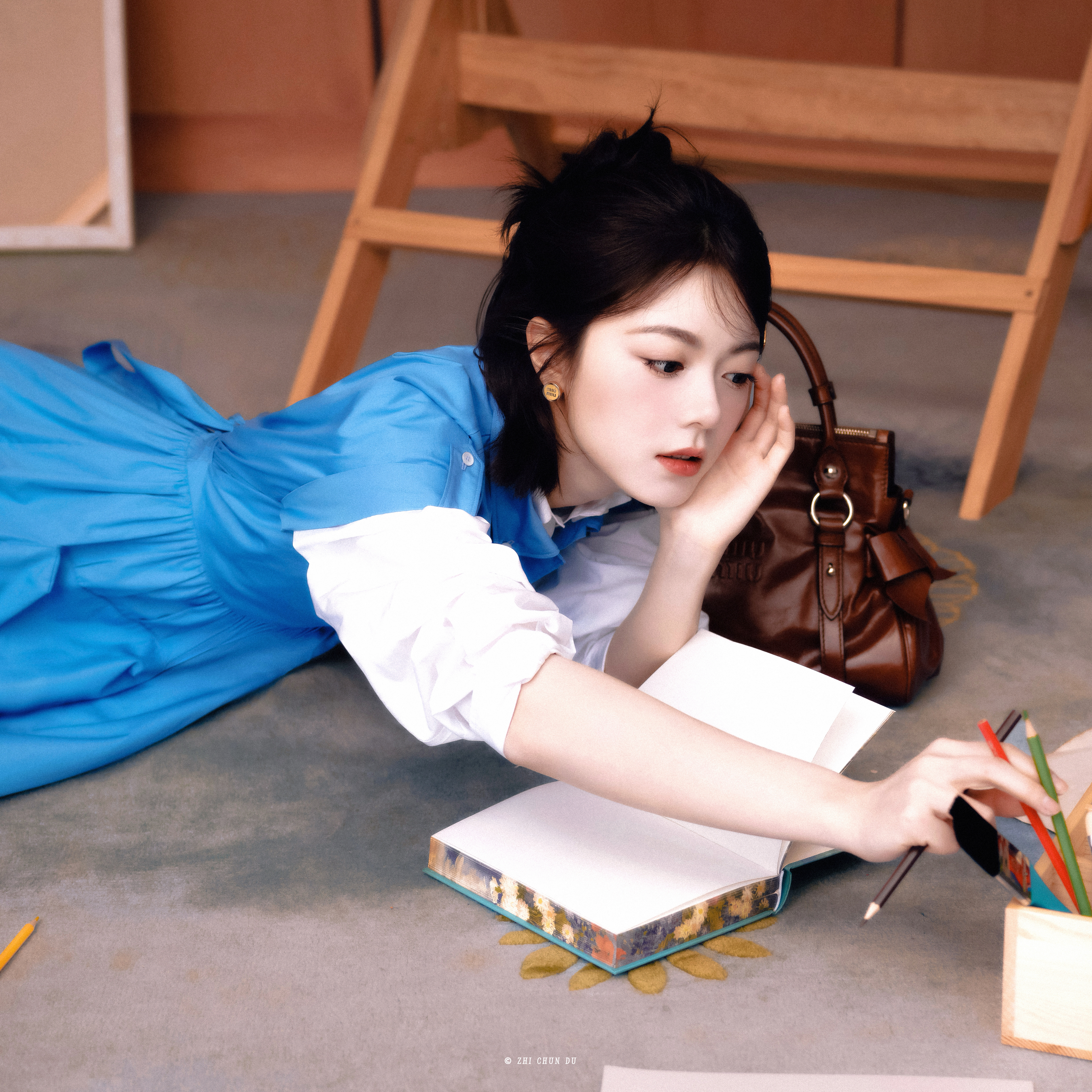 蓝色连衣裙造型,文艺清新感溢出屏幕,半丸子头可可爱爱,温柔靠谱学姐本人没错了。 赵今麦 赵今麦打碟