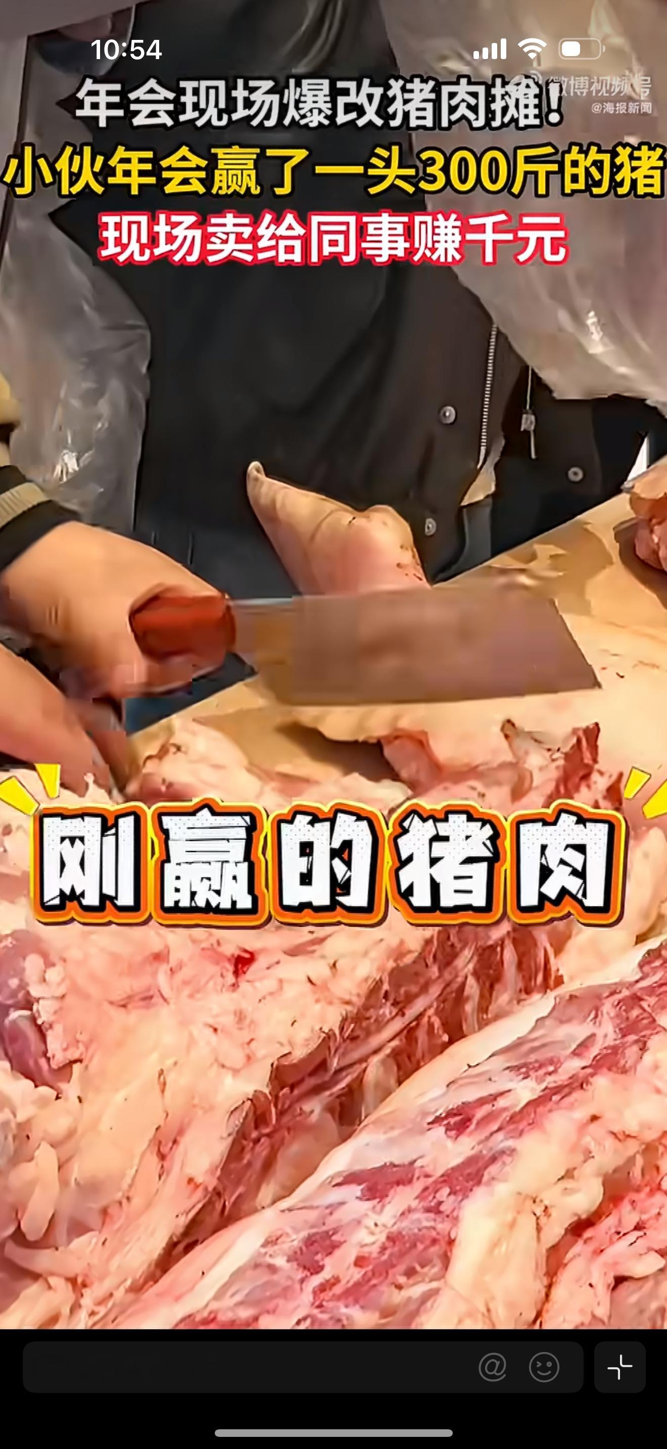 年会中的1头猪卖完赚千元】男子年会吃辣赢走300斤年猪2月12日,湖南长沙,90后小伙韩先生在公司年会上幸运赢得一头300斤年猪。因为不方便带回家,他直接在现场把猪肉实惠卖给同事,很快售罄还赚了上千元,现场气氛热闹又欢乐。网友纷纷表示:这才是接地气又实在的年会奖品!