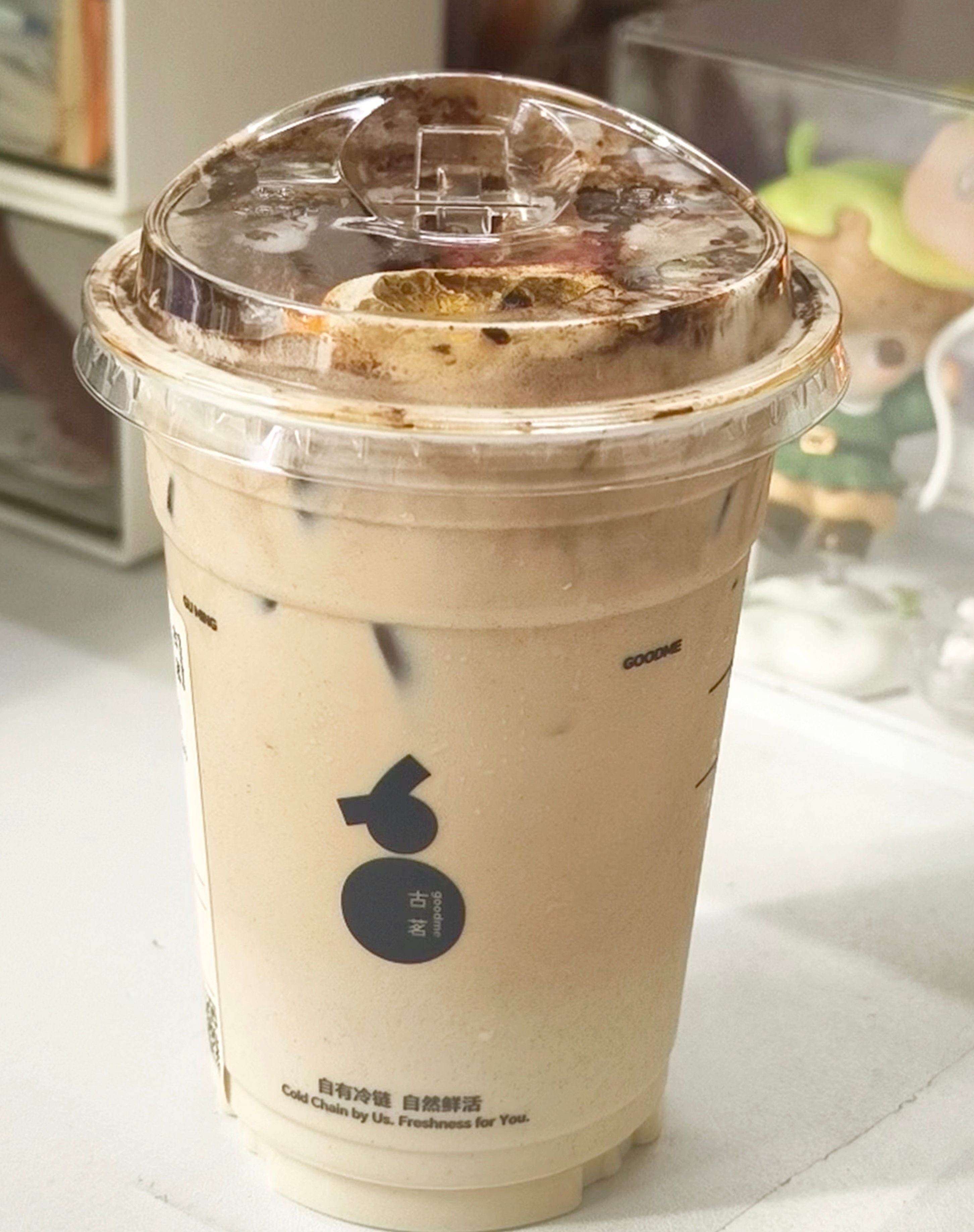 虞书欣严选很好喝啊这个苦尽柑来拿铁有点甜啊这个桃胶木薯炖奶