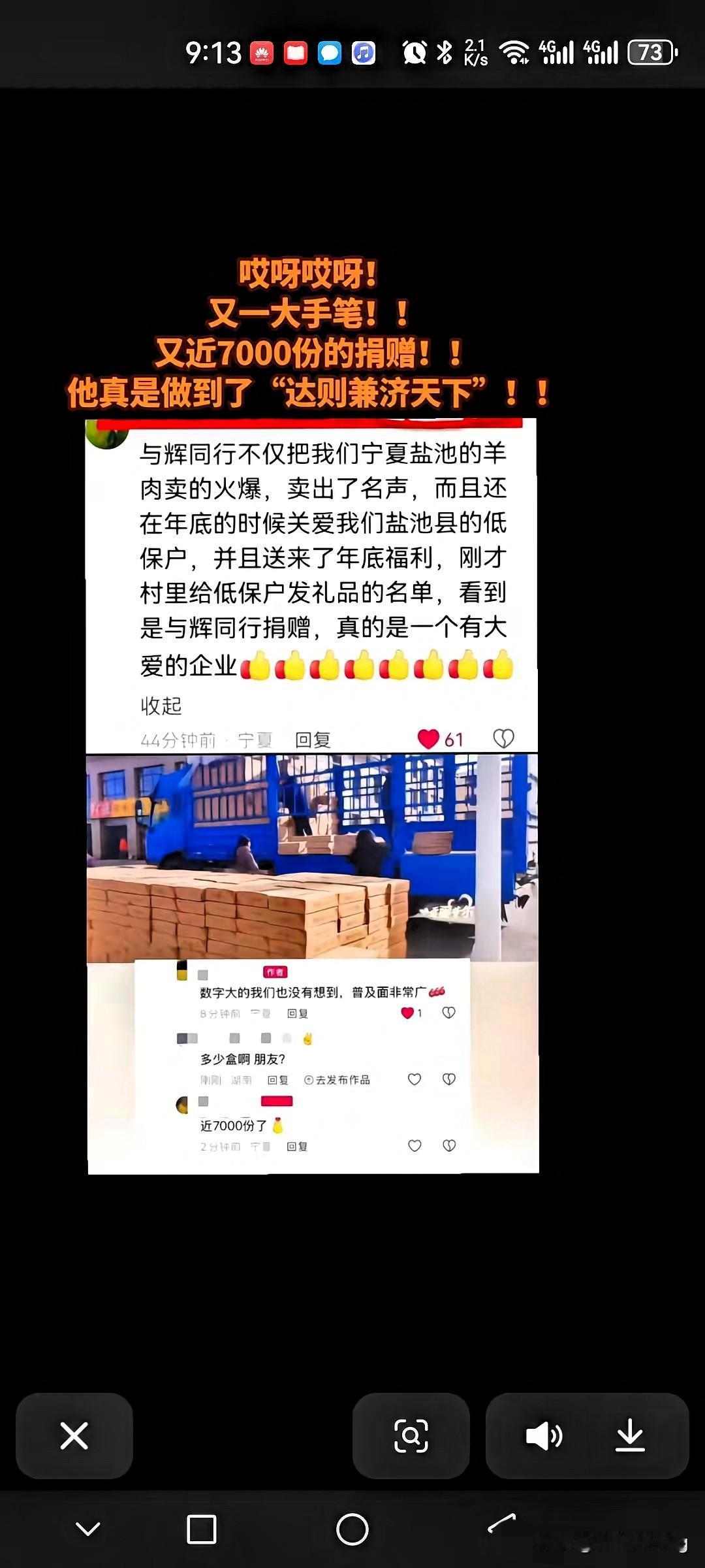 又被爆出捐赠!董宇辉悄悄给宁夏盐池县低保户,送去了近7000份新春爱心物资。 此前重庆助农时就透露,第二批捐赠会覆盖全国贫困县低保户,这次他说到做到,定制大米和坚果礼盒,把实惠与温暖送到最需要的人身边。从山西隰县到宁夏盐池,从环卫工到福利院,他的公益从不声张,全是默默落地。 真正的善良从不是高调作秀,而是躬身践行。达则兼济天下,他用行动诠释了什么是初心与格局,这样的善意,最动人也最有力量。 你被董宇辉这份低调的大爱圈粉了吗?