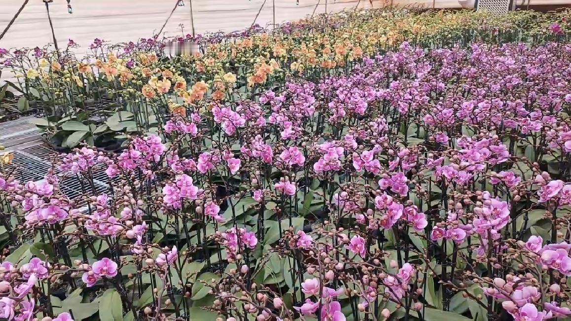 🔥年味拉满!晋宁年宵花爆火,日均出货1500万枝。春节将至,晋宁年宵花市场迎来销售旺季,蝴蝶兰、大花蕙兰、红玫瑰扎堆上市,花海一眼望不到头。日均鲜切花超1500万枝、盆花10万盆,订单火爆,畅销全国及东南亚。基地打包、装车不停歇,用满城鲜花点亮年味,“美丽经济”火出圈,今年过年就用晋宁鲜花添喜气!新年花市 新春盆花