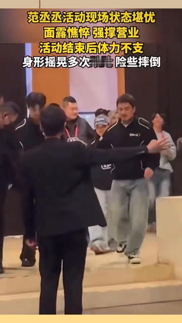 范丞丞活动现场状态堪忧,面露憔悴强撑营业。活动结束后体力不支,身形摇晃多次踉跄险