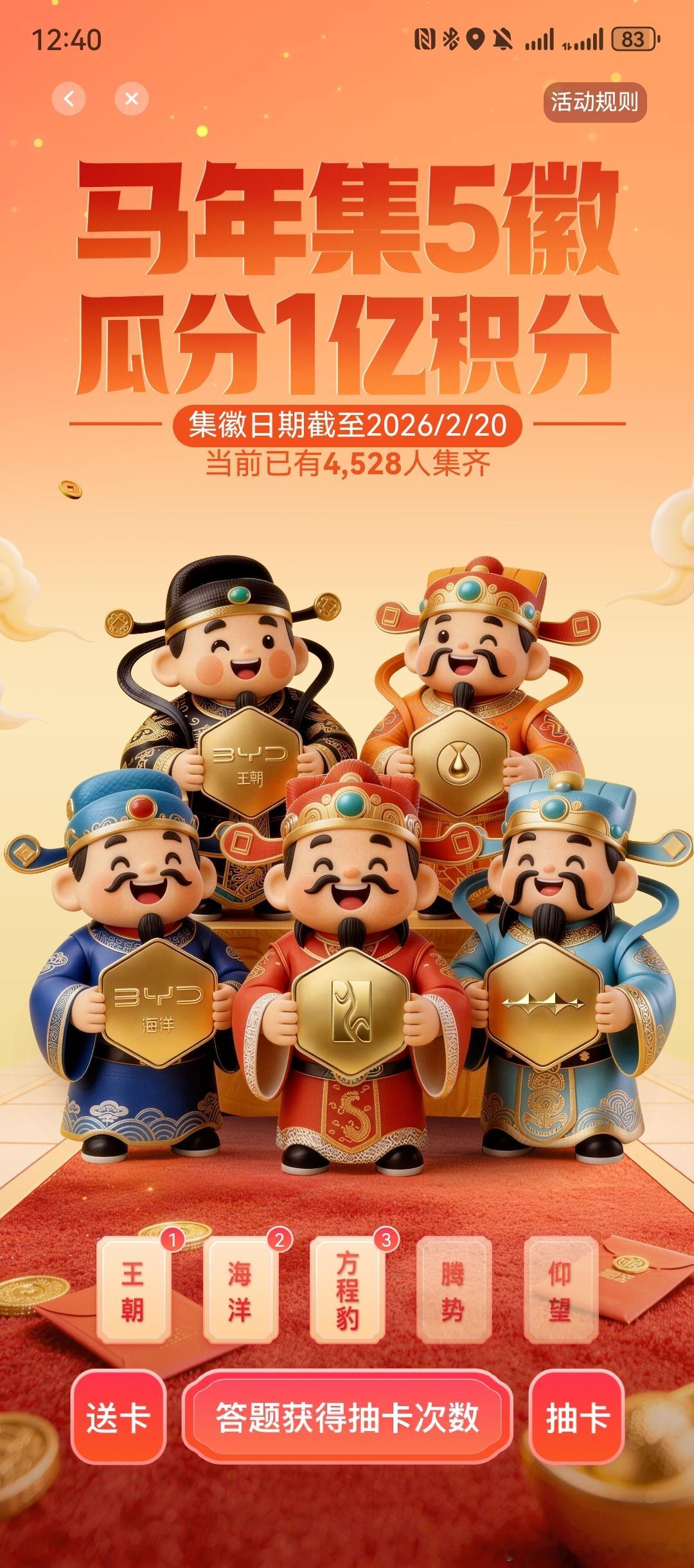 比亚迪集五徽分1亿积分第一天集卡,失败~