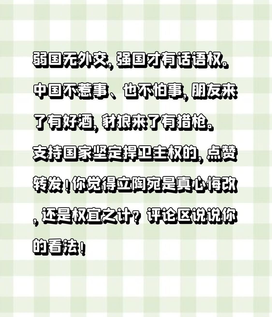 立陶宛最新涉华表态:认错改名、低头求和,背后真相大快人心 欧洲小国突然服软!立陶宛总理公开认错:当年涉台举动是重大战略错误,愿意按中方要求改名、修复关系!僵持数年,为何现在突然低头?真相让国人直呼:解气! 几年前,立陶宛一意孤行,允许台当局设立所谓“台湾代表处”,公然挑战一个中国原则,触碰中国核心红线。中方果断反制,外交降级、贸易冻结,中立关系瞬间跌入冰点。 本以为能靠挑衅博眼球、捞好处,结果现实狠狠打脸。木材、乳制品出口暴跌超50%,大批企业订单流失、工厂裁员,港口停运、经济重创,百年老厂都撑不住。老百姓怨声载道,政府撑不下去,终于扛不住了。 2026年2月,立陶宛新总理鲁吉尼埃内接连放话:承认当年错误、愿意将“台湾代表处”改名为“台北代表处”、删除涉华负面表述,主动求和,还盼着高层访华、重启合作。 从强硬挑衅到低头认错,不是突然良心发现,而是疼了才知道错。 一边是经济扛不住、民生顶不住;一边是欧洲多国纷纷改善对华关系,立陶宛彻底被孤立。再硬扛下去,只会彻底崩盘。 但中方态度很清醒:表态欢迎,更看行动!外交部明确回应:沟通大门敞开,但必须落实承诺、纠正错误、回到一个中国原则,光说不练没用。 总统与总理表态不一、小动作不断,也提醒我们:警惕两头讨好、说一套做一套。 国家尊严,寸步不让! 立陶宛的转变再次证明:一个中国原则是国际共识,核心利益没有商量余地。谁想打台湾牌、搞政治投机,必然付出沉重代价。 弱国无外交,强国才有话语权。中国不惹事、也不怕事,朋友来了有好酒,豺狼来了有猎枪。 支持国家坚定捍卫主权的,点赞转发!你觉得立陶宛是真心悔改,还是权宜之计?评论区说说你的看法!