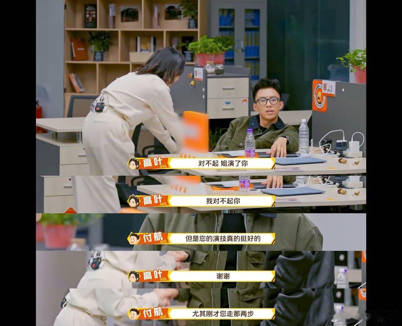 高叶把付航骗傻了周五晚高疯 付航平时嘴皮子多利索的人,高叶一句“你特别有才华”砸过来,他直接卡壳了。嘴角疯狂上扬还要假装低头看桌子。建议高叶出本书,《论如何让话痨在三秒内闭嘴》。