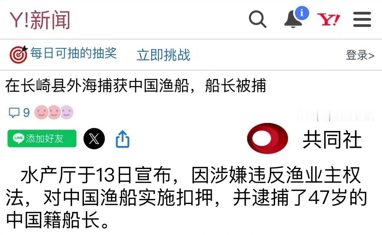 挑衅还在持续升级,2月12日,日本水产厅强行扣押一艘中国渔船。理由是该船涉嫌在日本所谓“专属经济区”内,无视日本水产厅停船命令并驾船逃逸,这艘船上载有11人,同时47岁船长遭到逮捕。 这是自2022年以来,日本第一次扣押中国渔船和逮捕船长,很明显在当前中日关系本就微妙时刻,日本方面还如此有恃无恐明显是挑衅找事。事发地点在长崎县五岛市女岛西南约170公里海域,由于中方不承认日本在该海域单方划设所谓“专属经济区”,所以渔船对日本执法船无视是正常的。 大家应该还记得,2010年“闽晋渔5179号”渔船在钓鱼岛海域作业,遭到日本海上保安厅强行扣押,并逮捕了船长和14名船员。后来的结果是,日本释放船长,同时中国海警加大发展力度,实力大增在钓鱼岛实现了常态化巡航管控。这么多年过去,日本还在继续挑衅,确实有必要敲打一下。