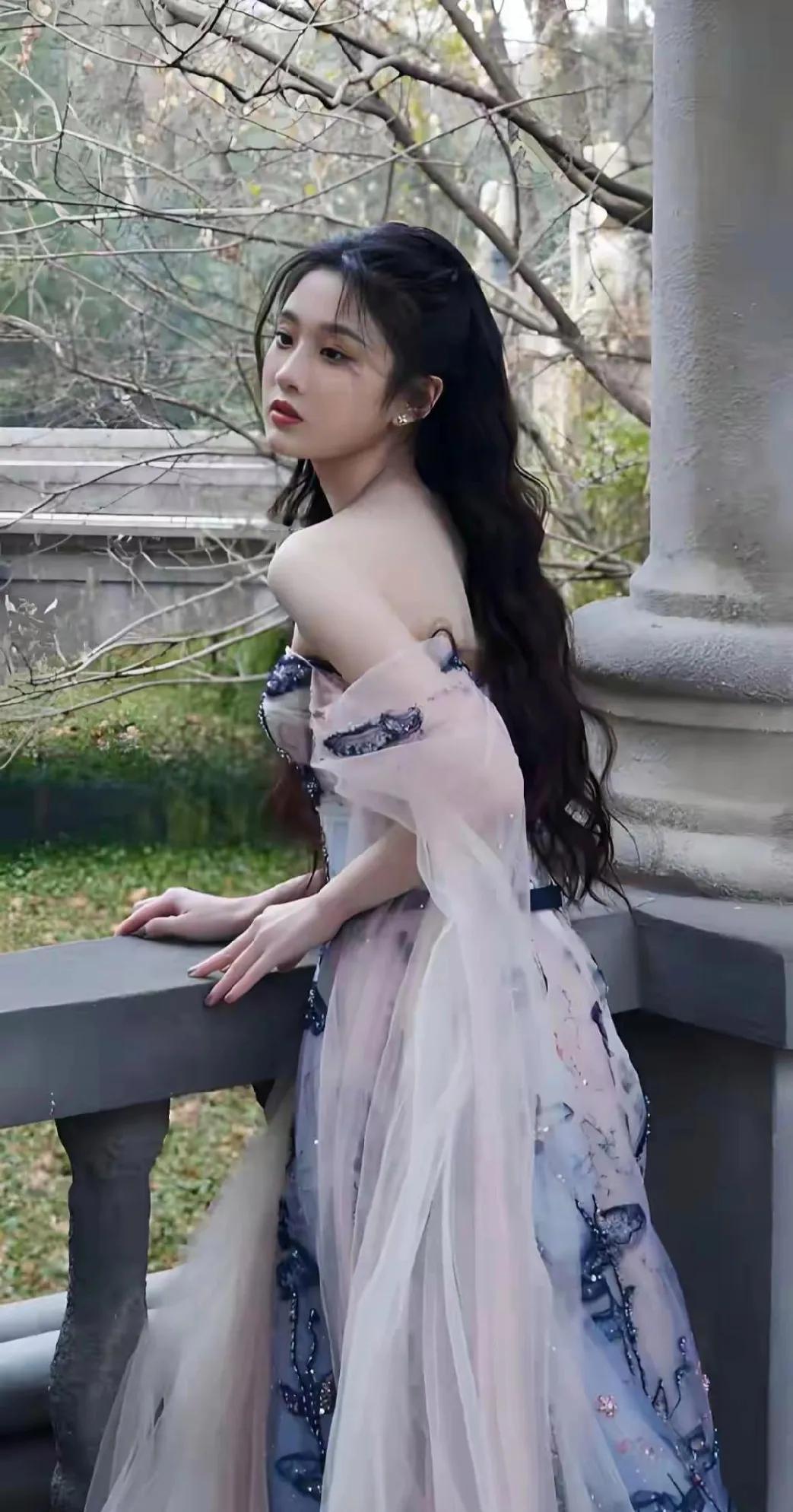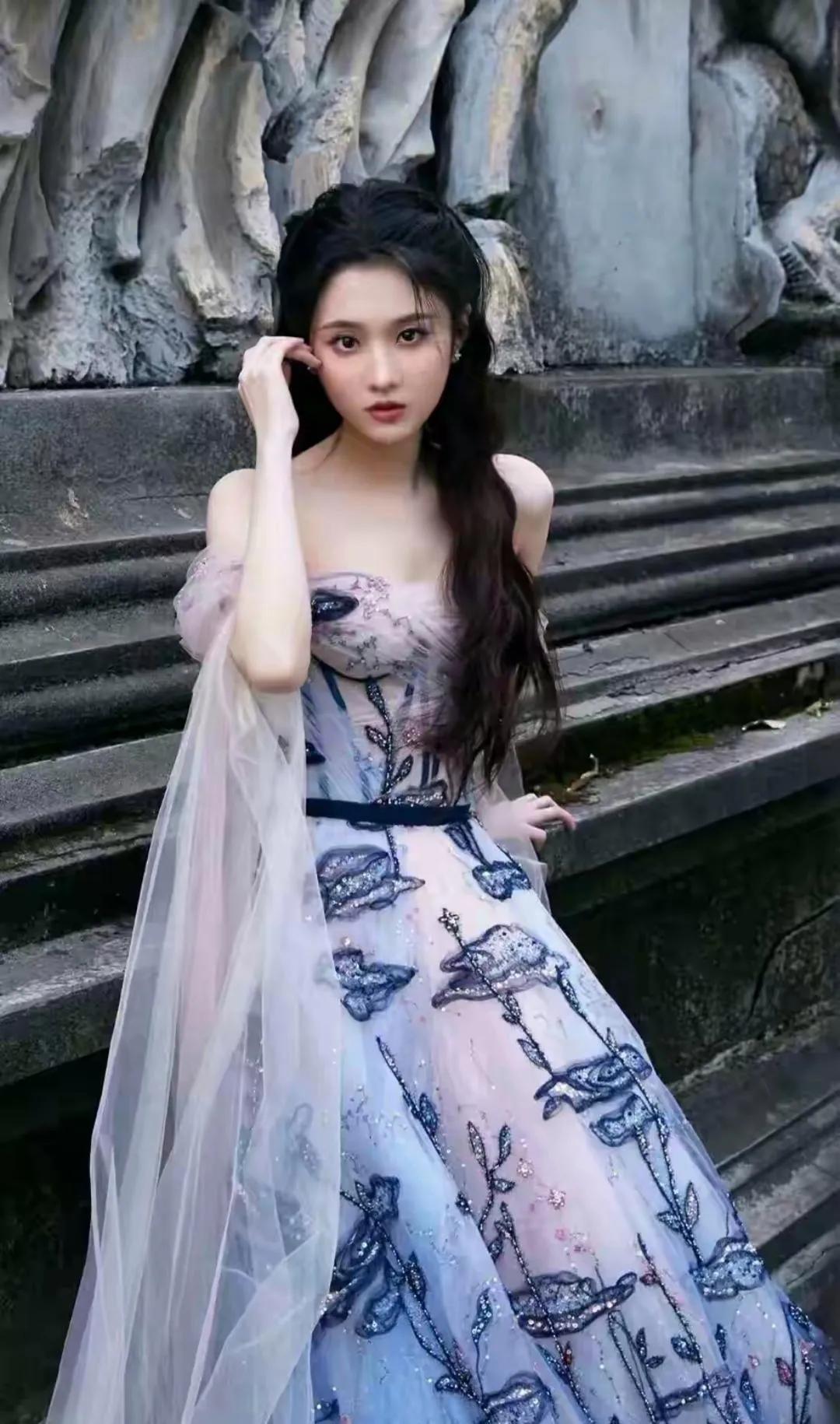 张慧雯这组图,像从欧洲古堡里走出来的少女。 渐变纱裙裹着她,像裹了一捧流动的月光。蓝粉交织的刺绣,是藤蔓在雪夜里生长,薄纱飘带随动作轻晃,连风都变得温柔。 她靠在石柱上,眼神里有故事,又像在等一个不会来的人。这种易碎又坚韧的美,比任何滤镜都动人。 张慧雯 清冷系美女 氛围感写真