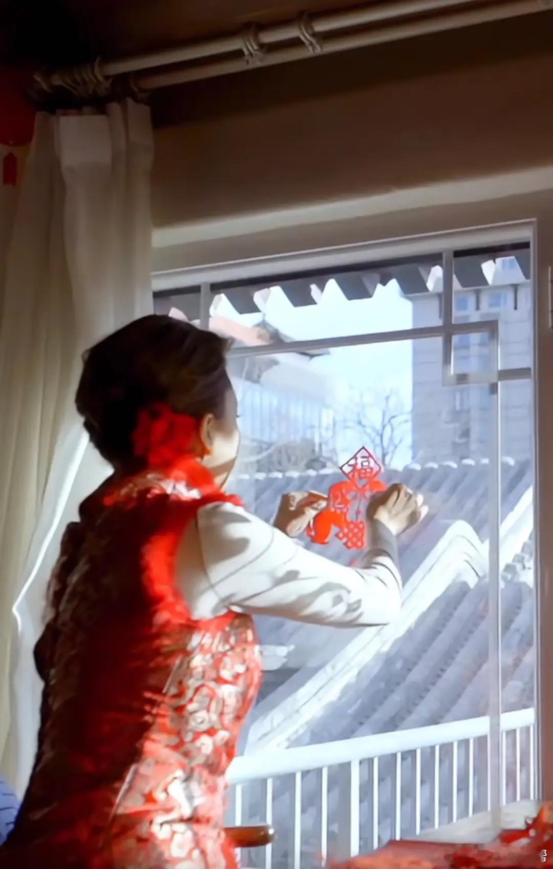 46岁张蕾北京过年,与家人住大四合院,一身红衣贴春联看脸像30岁