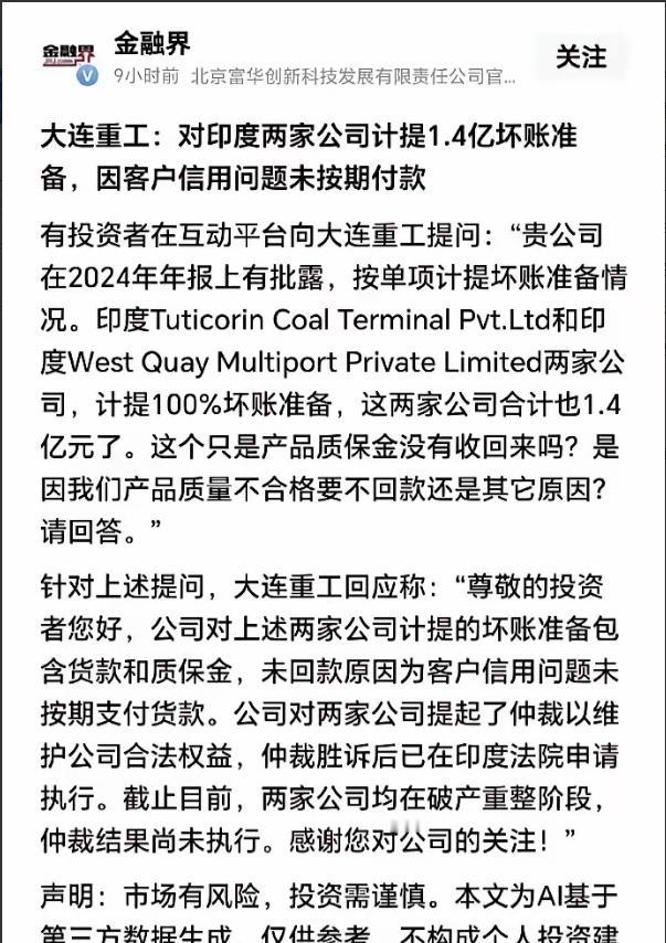 上市公司大连重工在印度市场踩了大雷。最近披露:印度客户不讲武德,1.4亿元货款和质保金打了水漂。尽管大连重工已经胜诉了,但三哥那边直接金蝉脱壳,申请破产,这是印度公司惯用的伎俩。 大连重工的这笔纠纷,源于海外EPC工程总包项目,这类项目涉及设备供应、系统搭建等一系列复杂环节,合作周期长、资金周转量大,本就容易产生纠纷。但真正让问题变得无解的,是印度客户的操作手法。 从合作初期来看,对方往往会表现出十足的诚意,抛出看似优厚的合作条件,吸引外资企业投入设备、技术和人力。 等项目推进到关键节点,设备交付到位、核心技术已经转移,对方就开始拖延付款,找各种理由推诿。 等到外资企业忍无可忍诉诸法律,印度公司看似配合走司法程序,实则早已开始布局金蝉脱壳。 印度的公司注册门槛极低,私人有限公司最低注册资本仅10万卢比,约合1200美元,而且不需要强制验资,甚至可以用虚拟办公室作为注册地址,远程就能完成全部注册流程。 这些合作的印度公司,很多从一开始就是为特定项目量身注册的壳公司,没有实际的资产沉淀,也没有长期经营的规划。 在拖延付款的这段时间里,他们会通过关联交易、资产转移等方式,把项目相关的有效资产悄悄剥离。 比如将大连重工交付的设备,通过租赁、抵押等名义转移到其他关联公司名下,或者通过虚假合同将资金转移出去。 等到法院做出胜诉判决,要求其支付货款时,这家壳公司已经是空壳一个,账面毫无可供执行的资产。 此时申请破产,就成了最后的收尾动作。印度的破产法虽然有明确条文,但执行起来漏洞百出。 1872年颁布的印度合同法里,并没有明确将“诚信”作为强制性原则,只是通过部分条款间接体现,这就给司法实践留下了极大的操作空间。 法院在处理破产案件时,往往更侧重程序正义,对资产转移的追溯和认定难度极大。而且印度的司法程序冗长低效,一场破产案审理下来可能要耗费数年,外资企业根本耗不起时间和精力。 更关键的是,印度的破产清算顺序对外国债权人极不友好。本土的债权人、供应商往往能通过各种关系优先受偿,等到轮对外资企业时,早已无剩余资产可分。 这种破产操作对印度公司的负责人来说,几乎没有任何实质性损失。他们可以注销这家空壳公司,再用同样的方式注册一家新公司,继续用同样的套路寻找下一个合作对象。 这种伎俩之所以能成为印度公司的惯用操作,核心在于违法成本极低,而收益却很高。 对他们来说,用少量的注册成本和时间成本,就能撬动外资企业的大额设备和资金投入,最后通过破产金蝉脱壳,相当于无偿占有了这些资源。 而外资企业跨国维权的成本极高,不仅要承担高昂的律师费、诉讼费,还要面对陌生的法律体系和地方保护主义,最后往往只能认栽。 印度的商业环境长期以来都存在这样的顽疾,营商环境排名常年处于全球末端,被称为“外资坟场”并非空穴来风。 很多进入印度市场的外资企业,都曾遭遇过类似的套路,要么被无端要求转让股权,要么被巧立名目追缴所谓的“税款”,要么就是像大连重工这样,货款被无限期拖延,最后对方直接破产了事。 这背后也反映出印度市场的深层问题,法律体系看似完备,但执行层面严重脱节。 1872年的合同法沿用至今,很多条款已经无法适应现代商业的需求,而司法实践中的地方保护主义和效率低下,进一步放大了这些漏洞。 加上印度的资产审核机制不完善,对公司注册后的经营监管乏力,让转移资产、空壳运营等操作变得轻而易举。 大连重工的胜诉,从法律条文上看是正义得到了伸张,但在实际执行中却成了一纸空文。 这不是因为企业自身维权不力,而是印度的商业生态和制度环境,从根本上就给这类套路提供了生存土壤。对方从一开始就没打算按规矩履约,所有的合作流程都是为了最终的金蝉脱壳做铺垫。 这种操作模式已经形成了一种恶性循环,印度公司通过这种方式获利,而外资企业的遭遇又让更多潜在投资者望而却步。 但印度庞大的市场规模和潜在的发展潜力,又不断吸引着企业冒险进入。只是每一次这样的纠纷,都在消耗着印度市场的信誉,也让外资企业在合作时不得不更加谨慎。