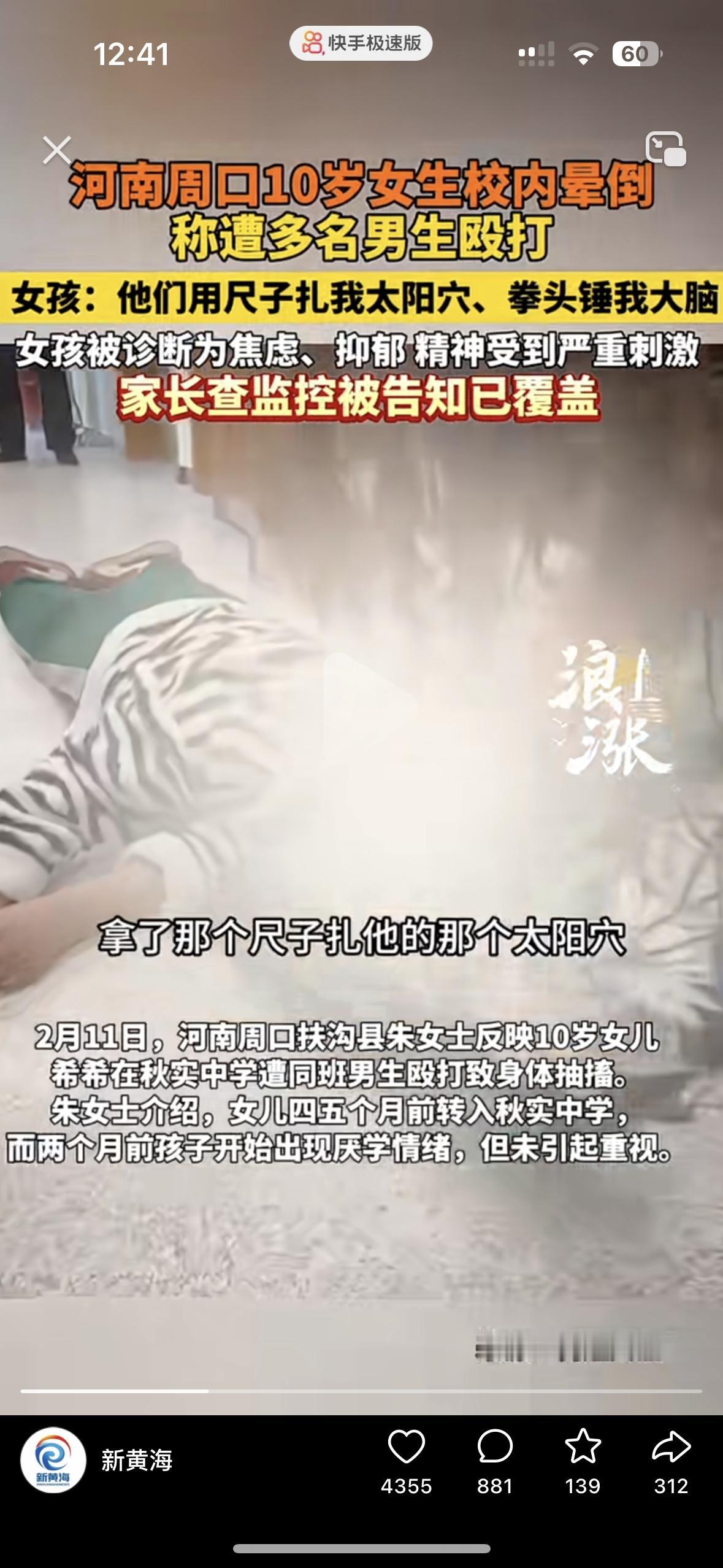 别再给孩子半路瞎转学了! 我就说当家长的没事别瞎给孩子转学!你看这事儿,一个10岁的小姑娘转去新学校2个月被打到抽搐晕倒,送往医院后确诊是焦虑抑郁,要靠精神类药物续命,这哪里是为了孩子好?这是把孩子往火坑里推 孩子妈妈说,女儿2个月前就闹着不想上学,家长没当回事,直到老师突然打电话说孩子被打到抽搐晕倒了去了医院,等孩子醒过来才哭着说,自己被4.5个男生用尺子扎太阳穴,用拳头打她的脑袋。 更恶心的是家长要去学校查监控,学校先是各种推诿,又说监控没了!这话谁信?就是不想给。好好地孩子,转个学成了这样,别再为了孩子好当借口瞎转学啦,安全感和熟悉的环境比什么都重要!