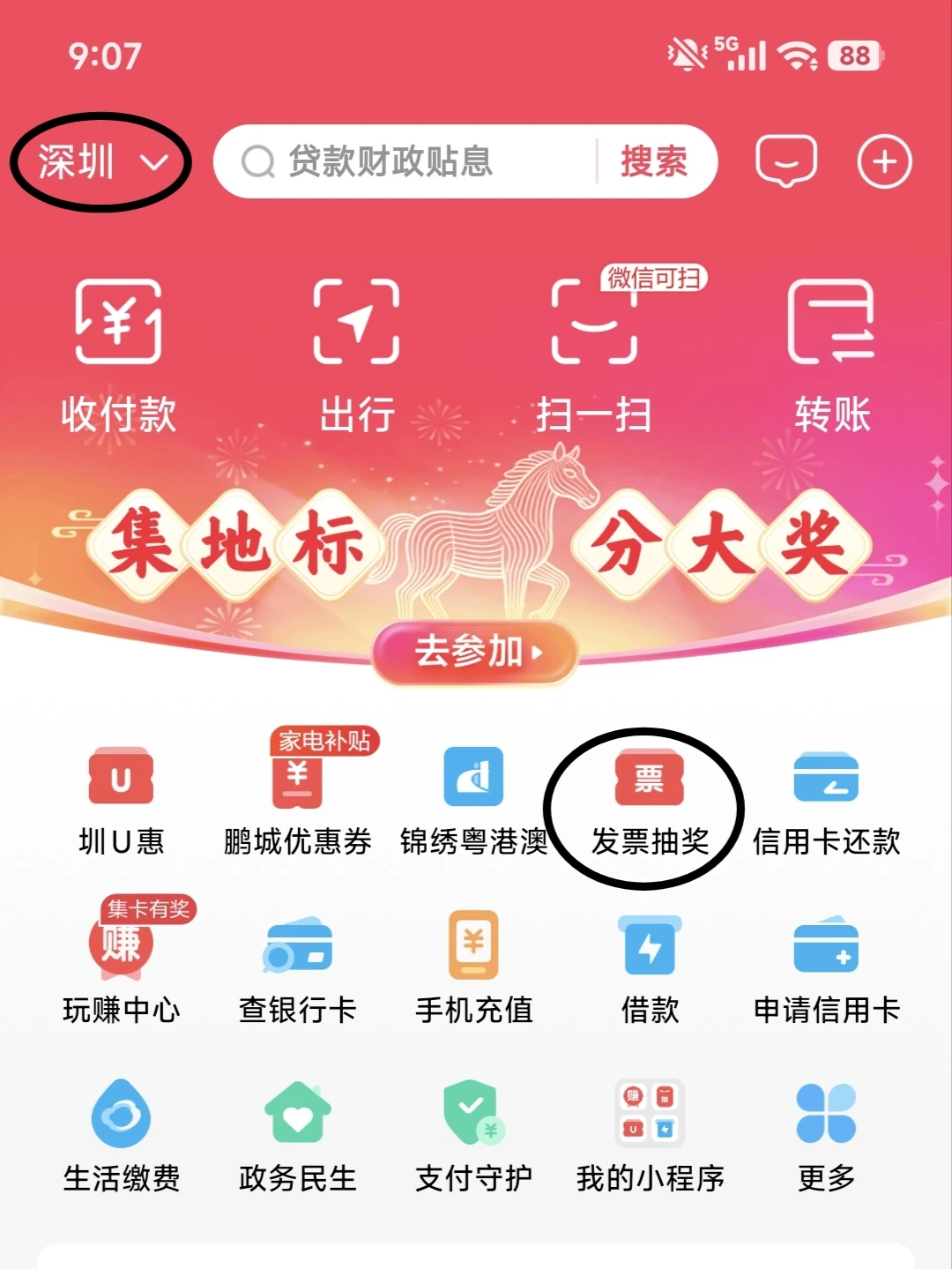 ②☁️闪付:首页可以切换地点,也可以搜索 有奖发票 ,城市选择发票销售方注册地对应城市