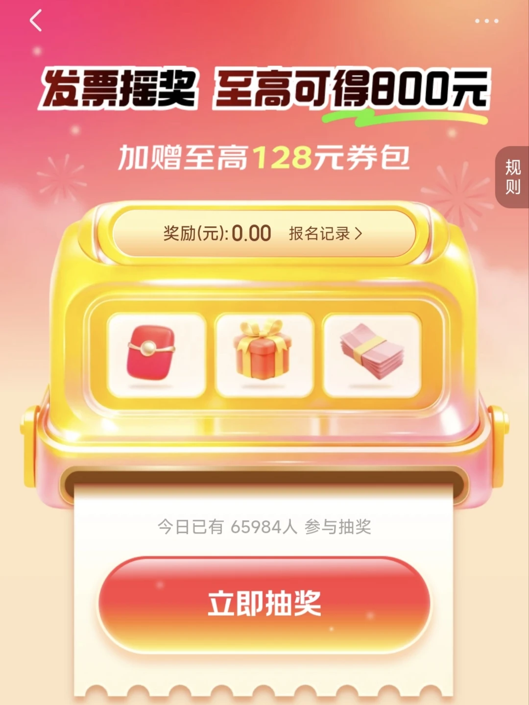 👀你还在纠结自己没有发票可以用?格局打开,全国抽奖,异地可用,快去找之前没开过票的订单吧,这下抽奖不得抽到手麻~