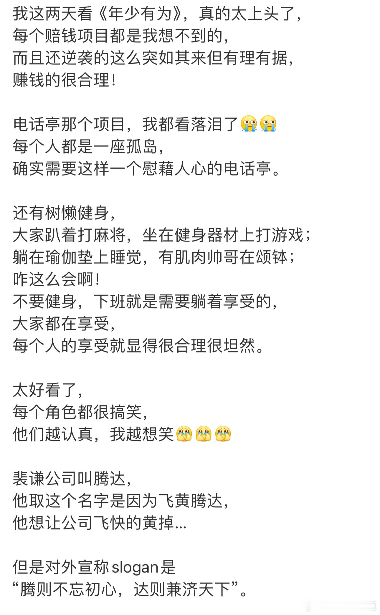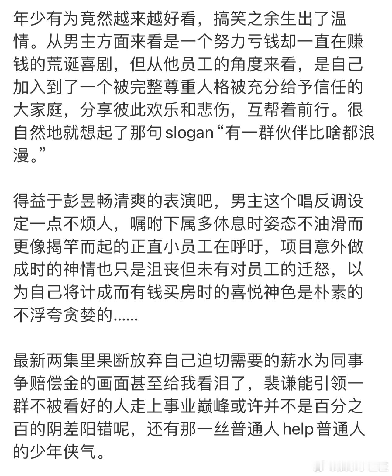 开年第一黑马年少有为要了 本以为《年少有为》是普通剧,结果被狠狠打脸!裴谦天天给员工发福利想赔钱,员工反向红包让公司上市,这剧情又搞笑又上头,贺岁档就看它!