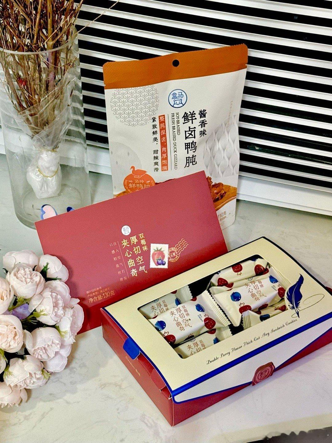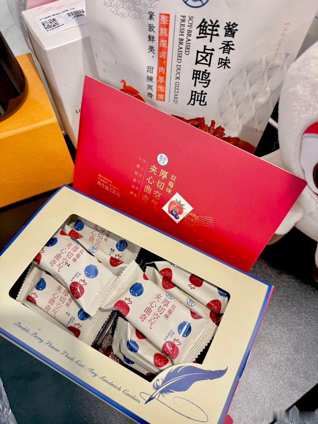 双莓味厚切空气夹心曲奇真的绝了!俺自从吃过一次就一直念念不忘~酥到掉渣,酸甜的莓果夹心中和了甜腻,追剧的时候根本停不下来!可可酥心榛子仁裹着浓郁的可可粉,坚果香混着巧克力的丝滑,俺爷奶都夸好吃不腻~吃的比俺还要上头它们家的猪肉脯是俺的私藏,香香脆脆的!一口上头,俺之前可没少买还有鲜卤鸭肫,酱香味浓,肉质紧实,下酒、当零嘴都合适。
