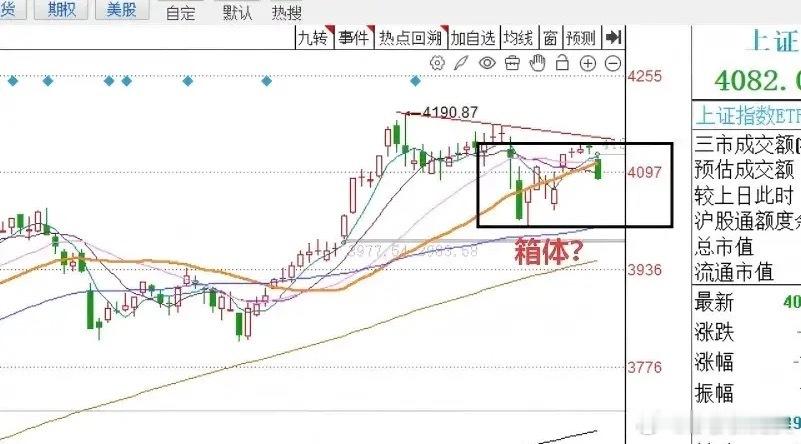 那么今天市场走出这样一根大阴线之后,对于接下来的走势怎么看?这个时候,我们不得不考虑市场短线走箱体结构的可能性了,这一点,我在本周之初以及在今天中午的时候也和大家详细的阐述了这个观点,市场如果走箱体的话,接下来市场的低点在近期的低点4002点附近。大家请看图二,上证指数日线图。