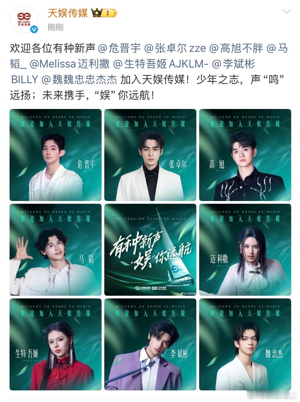 13年后天娱又签了选秀冠军天娱签了声鸣远扬8强 实力集结,新篇开启!全员签约天娱,星光不负赶路人,接下来一起走花路吧!声鸣远扬