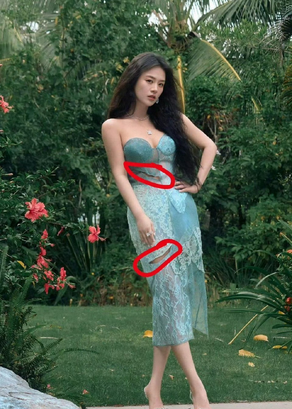 马思纯这裙子好奇怪,一眼看去还以为上面被划了两道口子呢