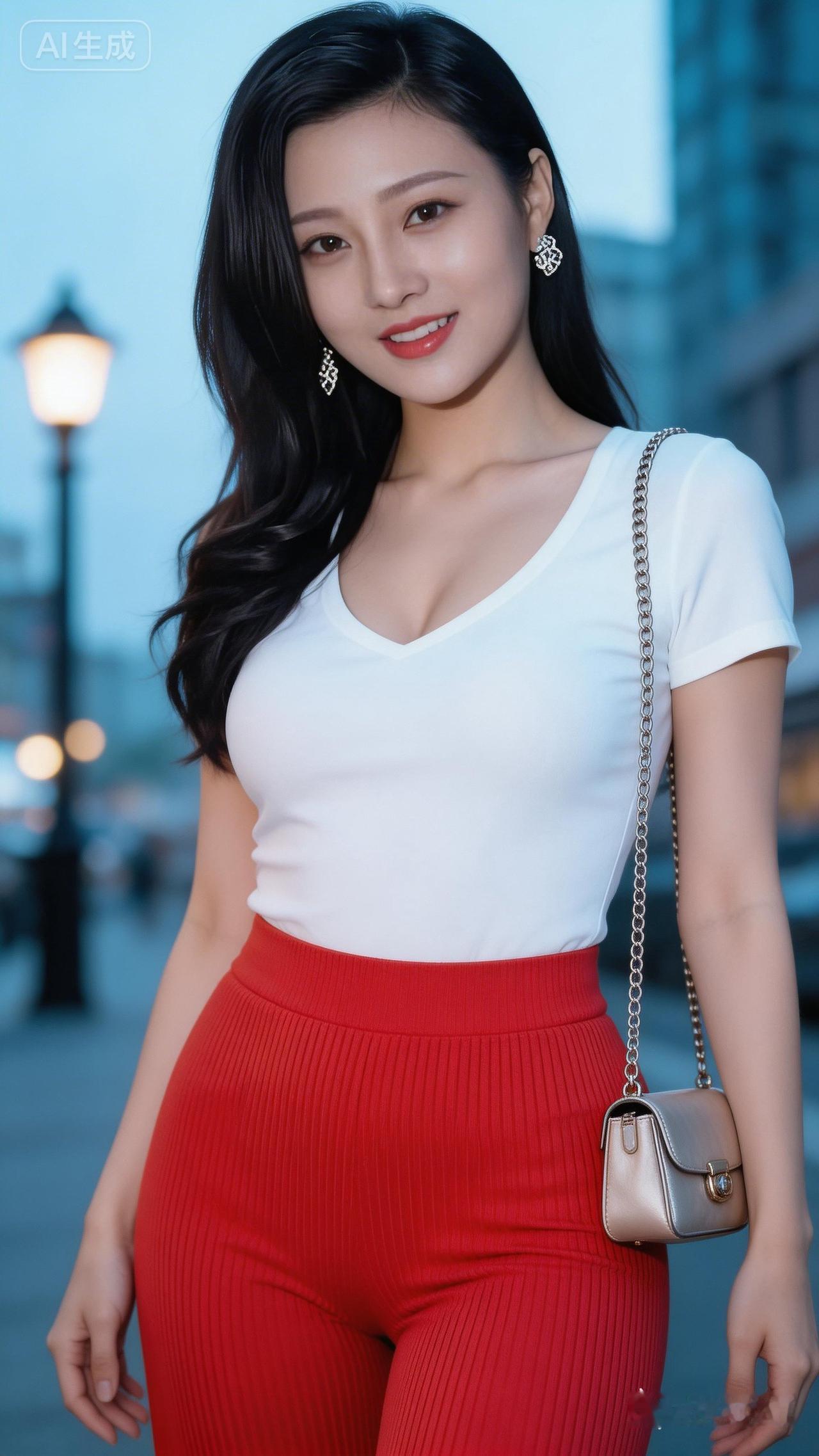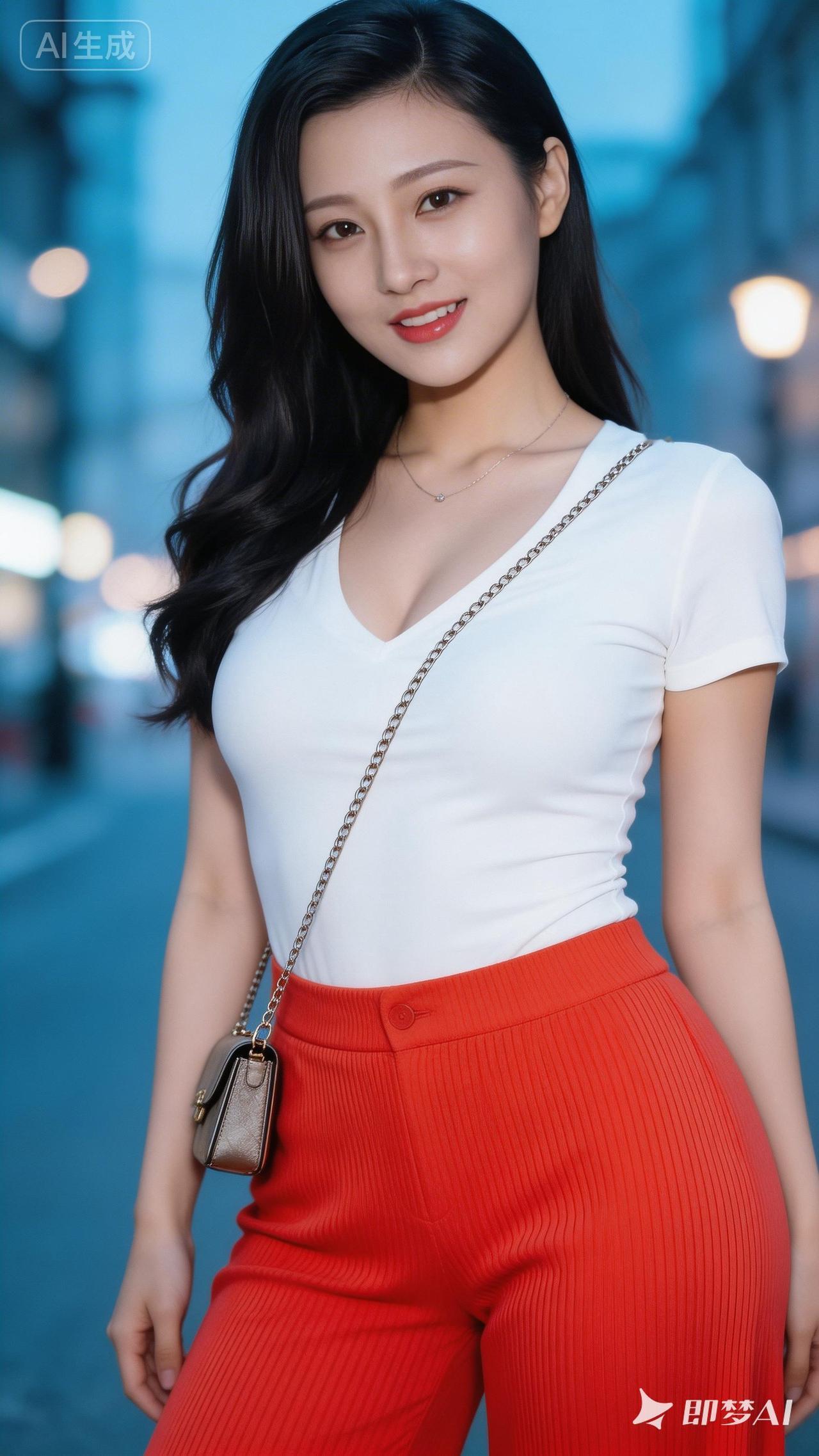 夜晚街拍,红白撞色穿搭,时尚又迷人!