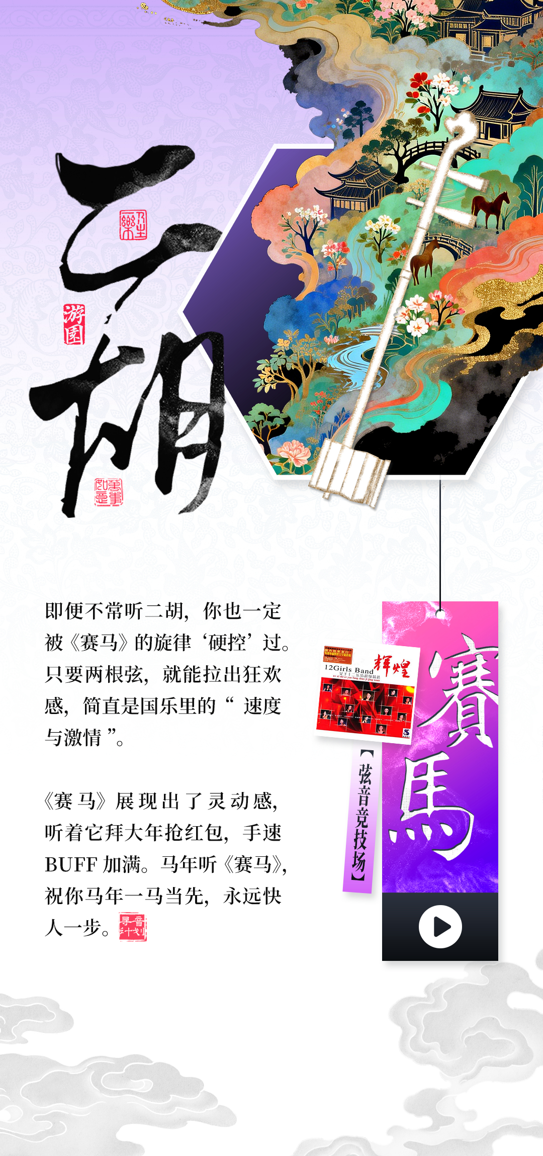 这个春节,快来华为音乐搜索“非遗游园会”,静听千年华夏之声,感受东方美学在当代的悠长回响>>网页链接