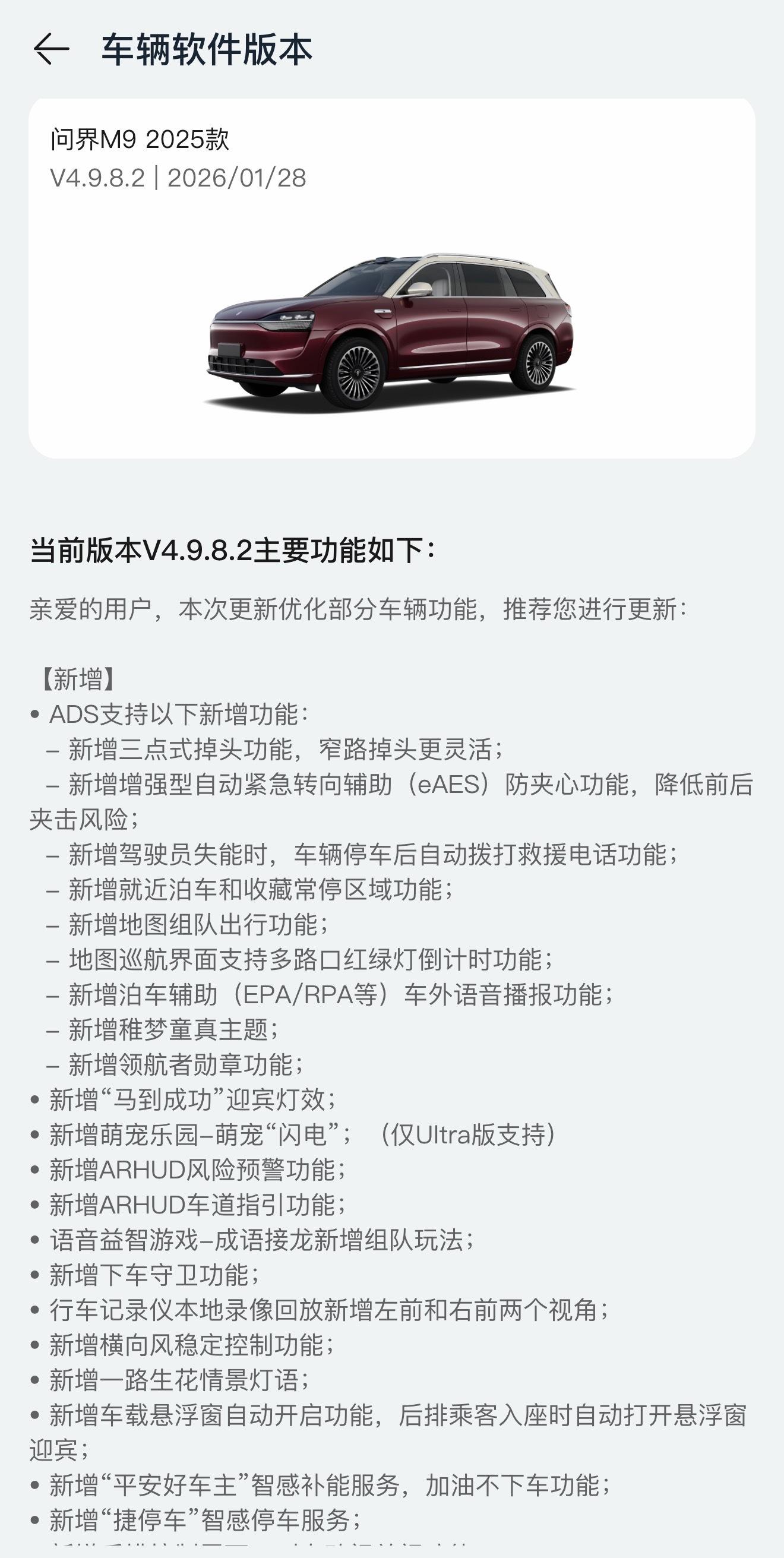 买了很多车,但是过年回家,还是得开问界M9,新增的悬浮窗(自动)迎宾功能我很喜欢问界M9