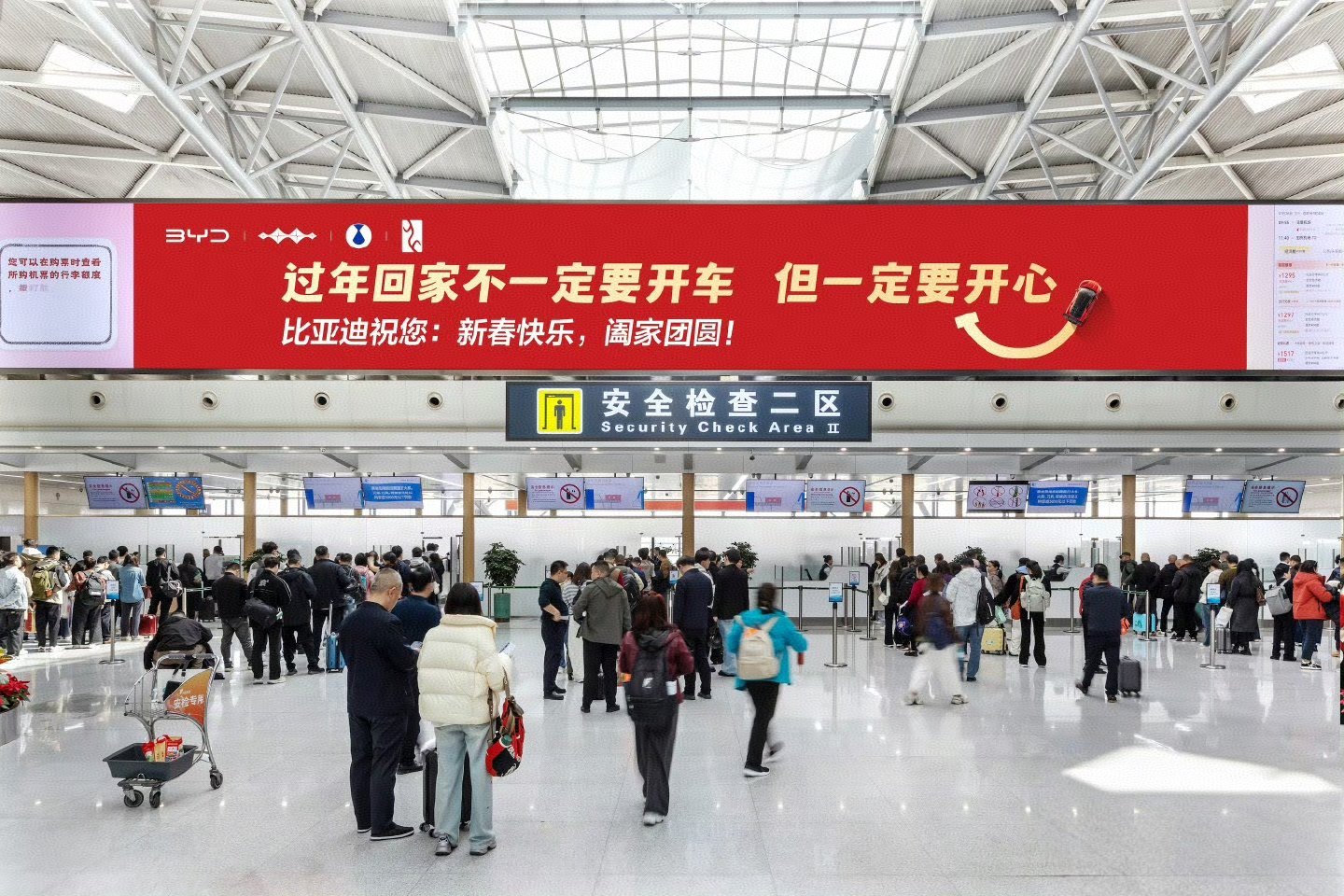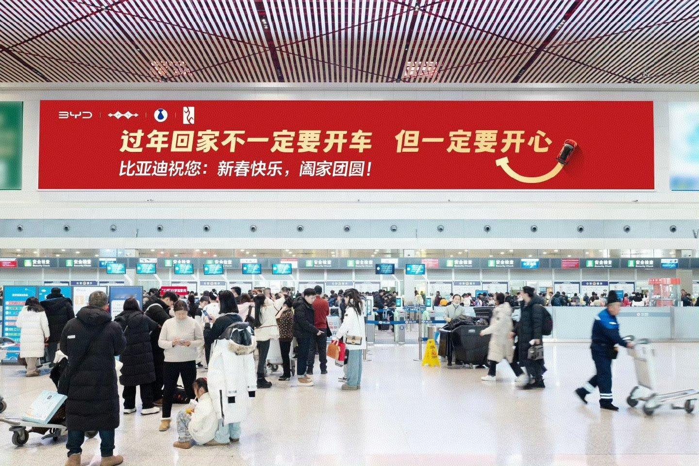过年回家不一定要开车但一定要开心 这个显眼的标语太有意思了,并且还是车企打出来的,真的很懂,不劝开车,只祝开心,新年常开心!