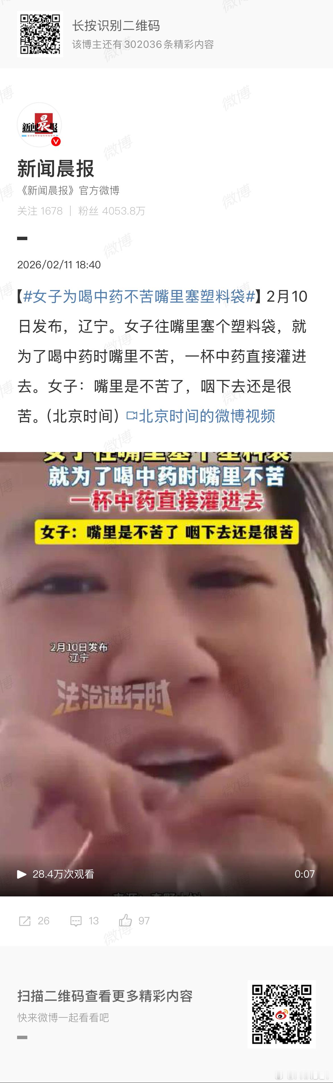 女子为喝中药不苦嘴里塞塑料袋 “咽下去还是很苦”并不。苦味主要由舌根部的味蕾识别,过了就识别不出来了,所以遮住的话的确能起到一定效果。