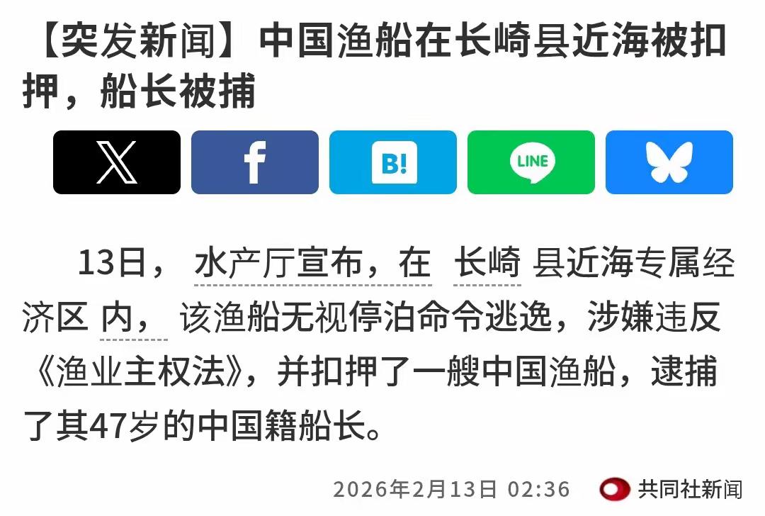 突发新闻:中国渔船在长崎县近海被扣押,船长被捕。 13日,日本水产厅宣布,在长崎县近海专属经济区内,该渔船无视停泊命令逃逸,涉嫌违反《渔业主权法》,并扣押了一艘中国渔船,逮捕了其47岁的中国籍船长。 有网友评论:在他国专属经济区内偷渔被逮是正常的,我们的渔船在南韩北韩印尼马来等都被逮过,这次跑慢了,没必要刻意政治解读,本国没啥鱼获,偷渔是常规动作 项庄舞剑,意在沛公。我们一眼看穿,日本意欲何为? 对此,你怎么看?