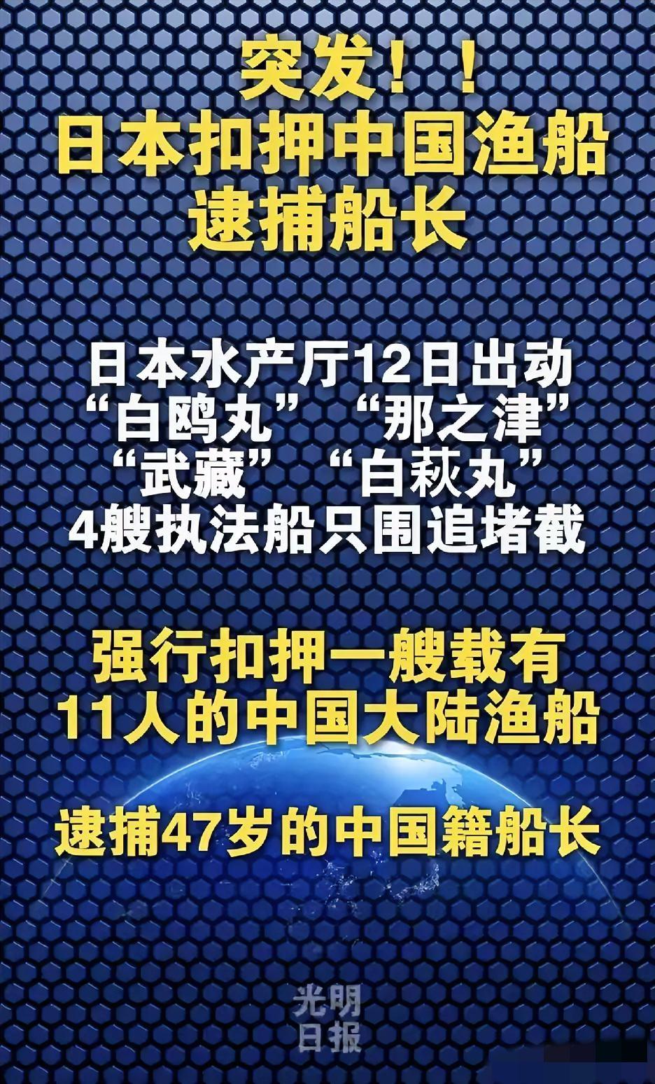 突发紧急状况:日本强行扣押中国渔船,逮捕了中国船长。