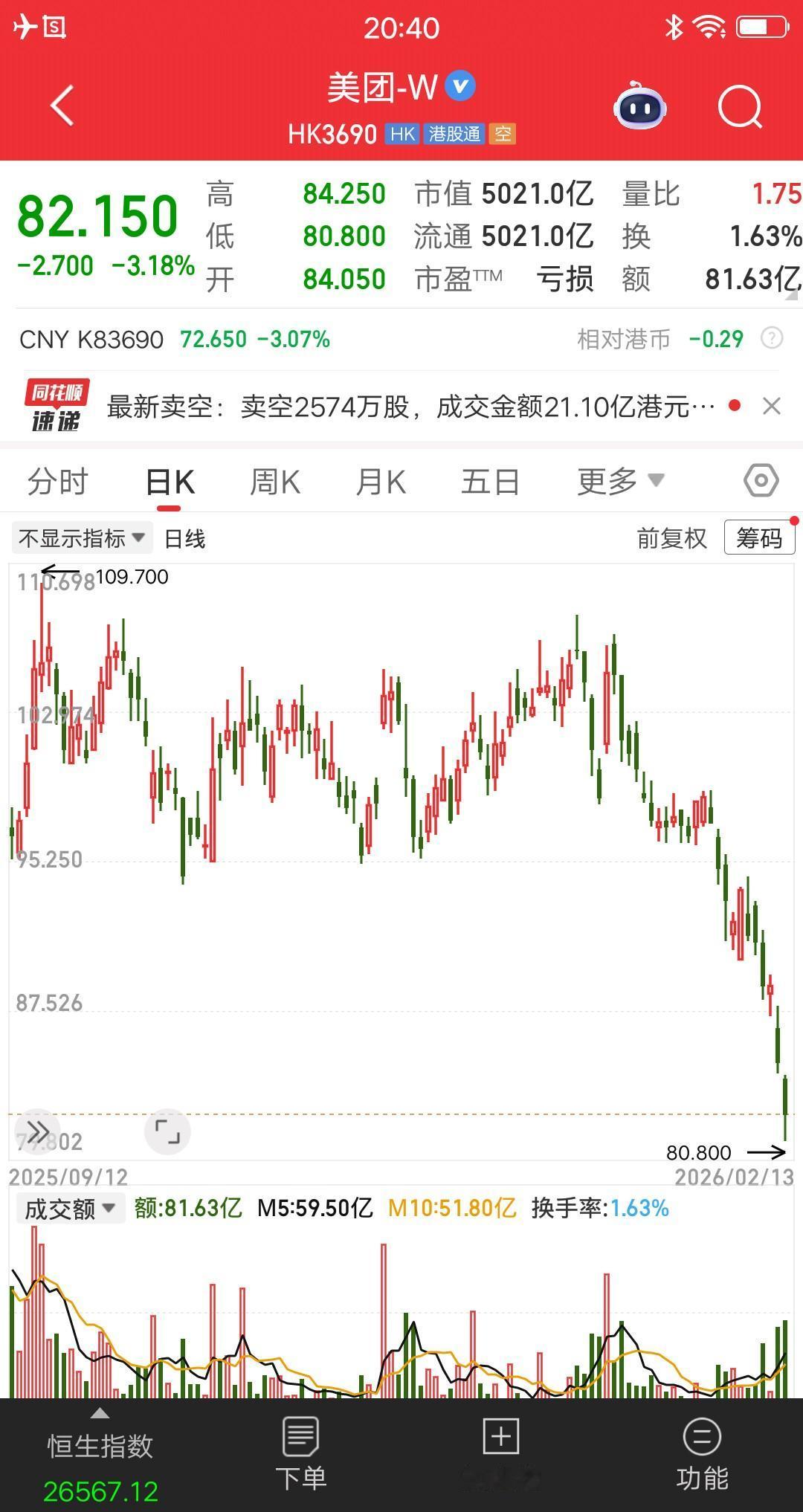 暴亏!美团2025年亏损233亿到243亿,预计2026年第一季度还会亏损。 导致亏损的一大原因是,行业竞争空前加剧。要知道对美团宣战的是阿里京东,这样的超级巨头,有钱有人才有战略。只要决心够,一直打下去,干翻美团也不是不可能。 美团的股价提前反应了,近一个月的时间,跌幅近22%。对于行业巨头来说,这个跌幅够狠的。 问题来了,二级市场要不要大规模回购。如果不回购,那么股价压力非常大。如果回购,那么资金压力非常大。 美团该如何破局?