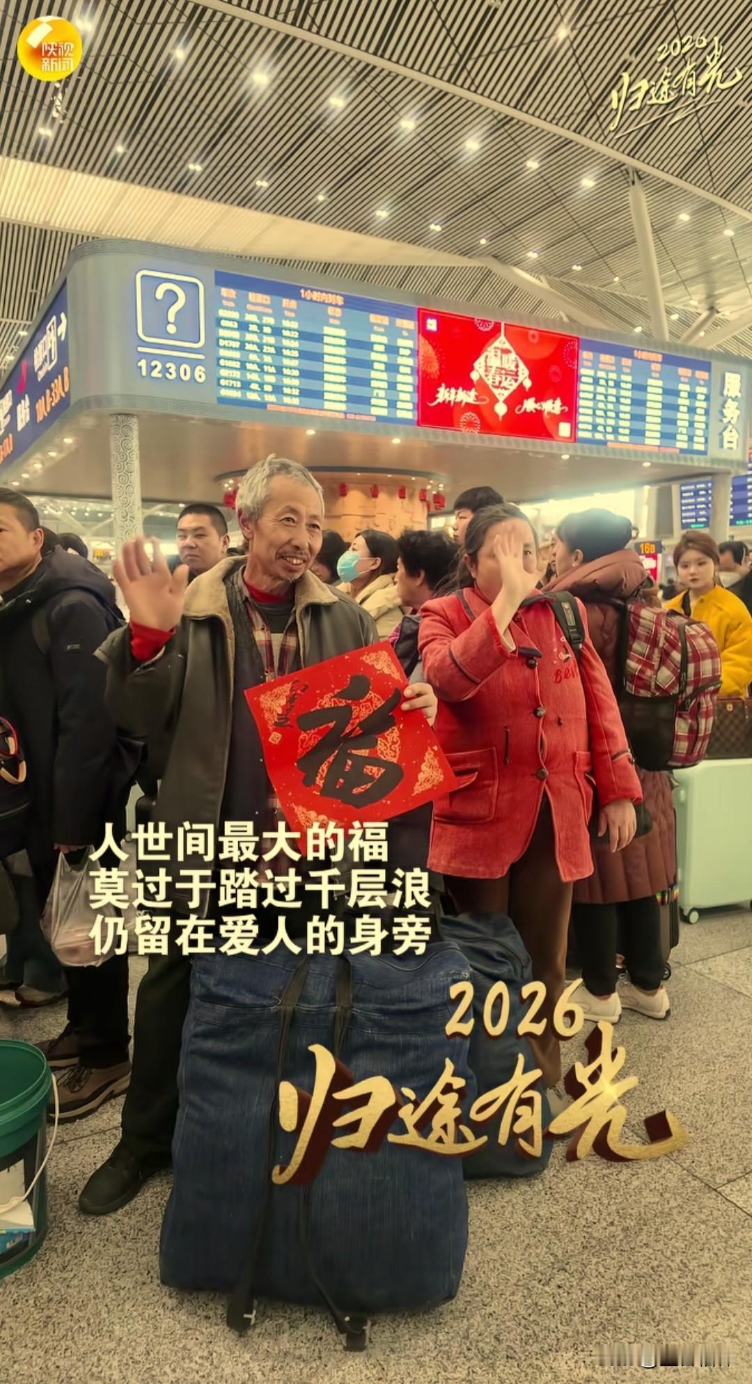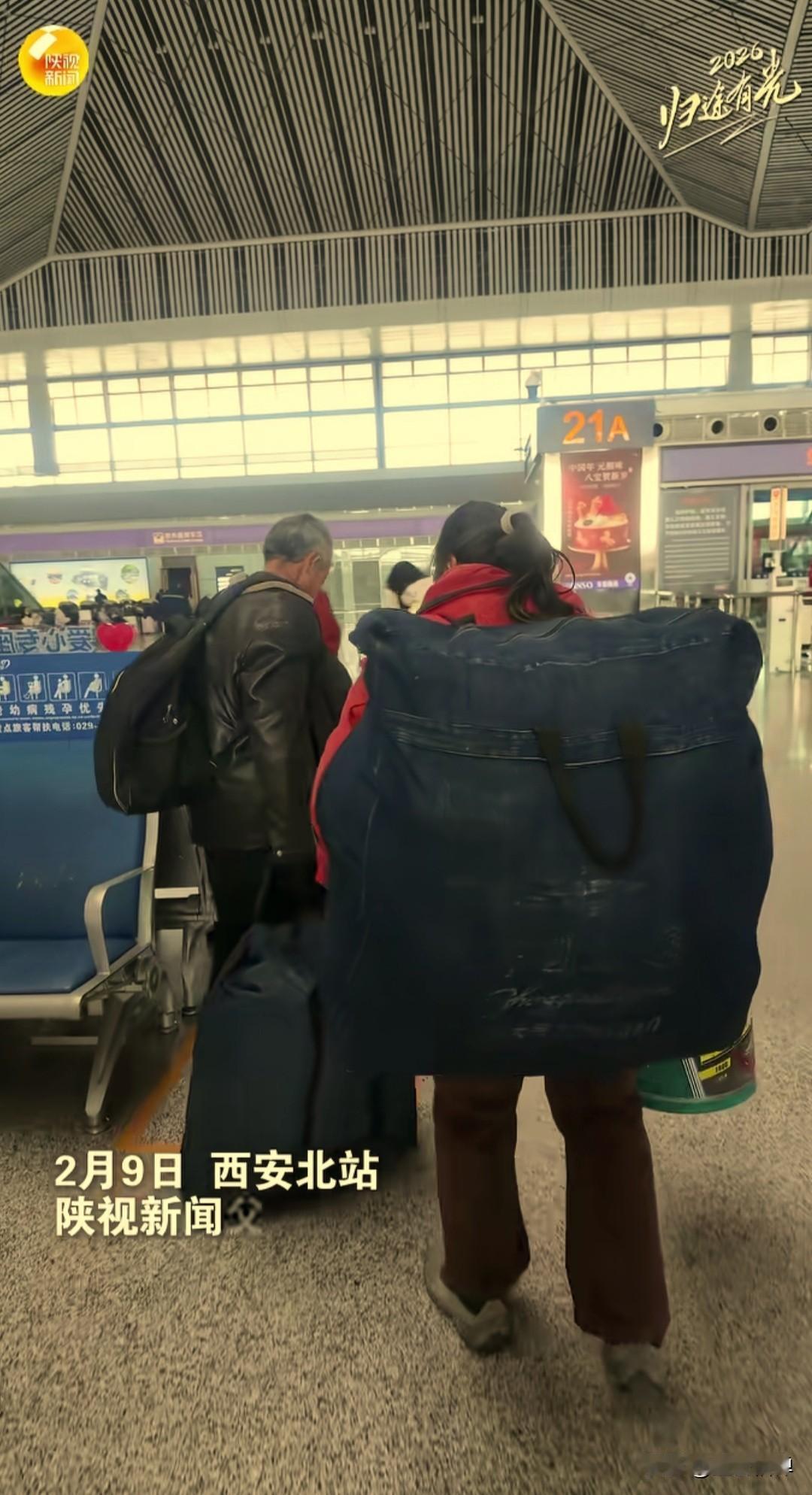 人生最大的幸福,莫过于有一个懂你、爱你、陪你的人,还有一个幸福美满的家庭。 近日在西安北站,记者捕捉到了一对夫妻进站候车的背影。两人背着大包小包的行李,手里还攥着回家的车票,准备乘车回家过年。 他们来自陕西汉中,在江苏南通打工,乘车到西安北站中转回汉中。记者问打工辛不辛苦,张女士说:“辛苦是辛苦,但是收入还可以。我以前没上过工地,这次陪爱人一起,才看到他这么辛苦。” 想到爱人牟先生在工地干了一辈子,她心里酸溜溜的,风吹日晒、严寒酷暑都要工作,在高架上还要背着八九斤重的安全带,实在太不容易了。她既心疼,又佩服爱人不屈不挠的精神。 牟先生也说,爱人跟着自己过日子也不容易。当问到孩子时,他一脸欣慰:“儿子在上海工作,今年谈了个女朋友,2月18号回来结婚。” 张女士说,这次回来就是要给儿子办酒席,一家人团团圆圆的。她也相信,儿子以后的日子会越来越好。 来源:陕视新闻