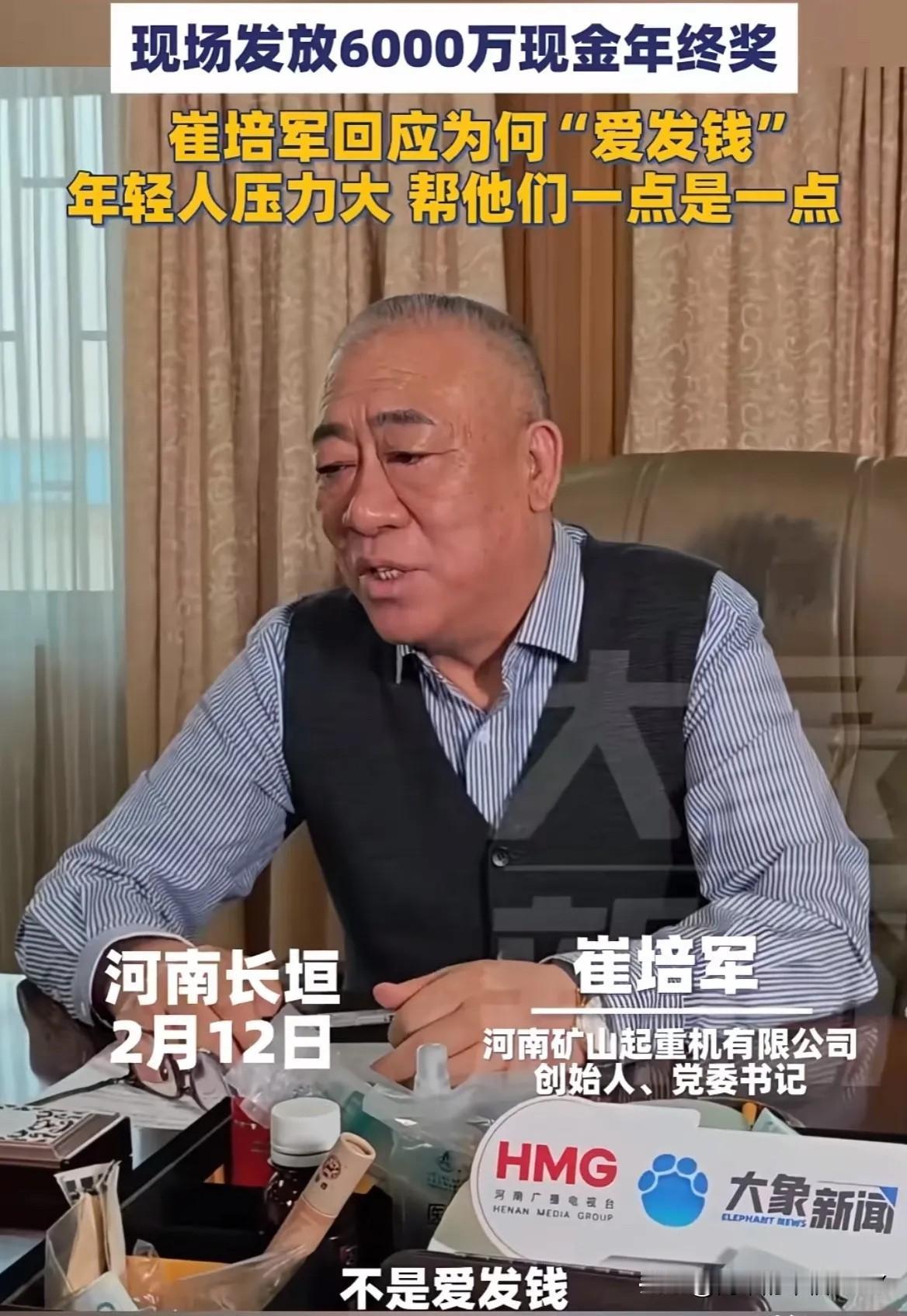 崔培军首次回应为什么爱发钱!他说,不是爱发钱,是见着年轻人不容易,能帮衬一把是一把,能多给点就多给点。 今年员工的年终奖和各种奖励加起来,差不多有1.7亿。这样的做法,他们已经坚持了20年。“我真不是爱发钱,”他又强调了一遍,“年轻人背着车贷房贷,压力实实在在压在肩上。” 企业能做这么大,离不了员工们的拼劲,利润是大家一起干出来的,企业自然该拿出钱来,帮他们松松担子。难怪人家的企业能越做越大,老板对员工掏真心,员工拿到合心意的报酬,还能感受到被尊重,干活自然肯卖力。 每个人都把公司的事当成自家的事,负责任、敢担当,企业的收益怎么会不往上走?这就是实打实的良性循环,你敬我一尺,我还你一丈。反过来想,有些企业做不长久,不是没有原因的。 老板把钱挣得盆满钵满,天天山珍海味,员工却累死累活,稍微出点小错就罚款扣分。换作是你,能对这样的企业死心塌地吗?能全心全意为它打拼吗?人心都是肉长的,谁也不傻。 别总抱怨员工不勤奋、不努力、没责任心。你把钱给到位了,把尊重给到了,多数时候,你的要求他们都能办到。老话讲“投我以木桃,报之以琼瑶”,你怎么对待员工,员工就怎么对待你,这叫礼尚往来,一点都不复杂。 企业说到底是人的集合,人心齐了,泰山都能移。崔培军的做法,说白了就是懂这个理。他知道,员工不是机器,是活生生的人,有难处,有期盼。 企业挣了钱,不忘分一杯羹给大家,帮着解决点实际困难,员工心里暖了,干活才有劲,企业才能走得远。那些总想着克扣员工、算计人工成本的老板,看似省下了眼前的钱,实则丢了人心,断了后路。 员工的积极性没了,责任心淡了,企业怎么可能有竞争力?到头来,只能是捡了芝麻,丢了西瓜。所以说,做企业和做人一样,得有格局,懂感恩。 利润是大家共同创造的,成果自然该大家一起分享。崔培军的“发钱”,发的不只是钱,是信任,是尊重,是对“众人拾柴火焰高”的深刻理解。这样的企业,想不做大都难。