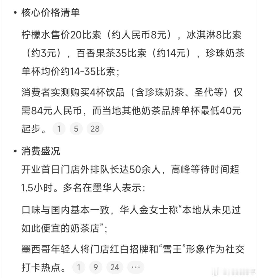 蜜雪冰城墨西哥首店开业价格曝光这样一看还得是蜜雪,实打实的国货之光。而且蜜雪在国外的价格也不算贵,但是打爆当地的其他奶茶绰绰有余,在国内打得起,在外国一样打得起。